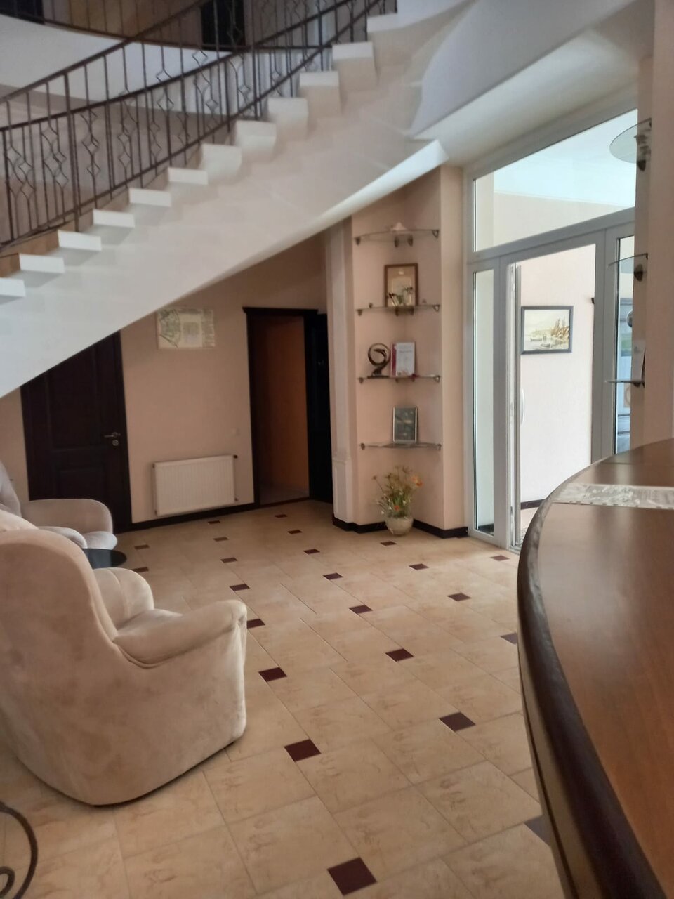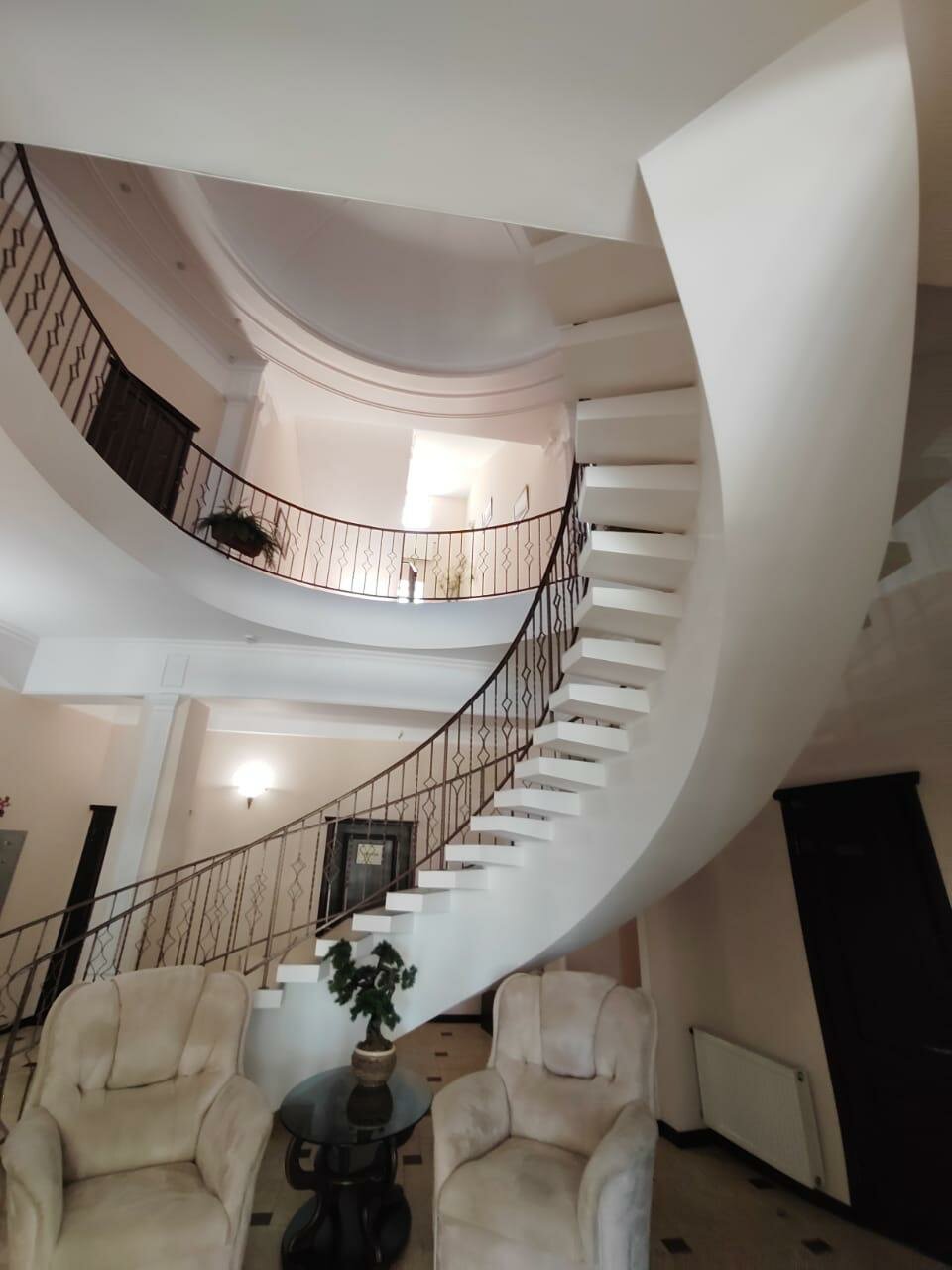 Это не отель! Это атмосфера!!!!!! Огромное с виду здание, а внутри около 20 номеров. Всё номера подстать зданию — просторные с высокими потолками. При масштабности и монументальности объекта, внутри все сдержанно и лаконично. Если пр входе в здание Вас может встретить посторонний запах, то в номерах (в нашем по крайней мере) его небыло. В отель заезжали на одну ночь, в итоге решили задержаться на 2, о чем ни сколько не жалеем. Завтраки континентальные. Приносят кашу или яичницу, кофе или чай, и нарезку (сыр, ветчину, масло, овощи и хлеб). В целом такой порции вполне достаточно что бы плотно позавтракать и непереесть. Так что это место смело можно рекомендовать ценителям, ну и конечно родным и близким.