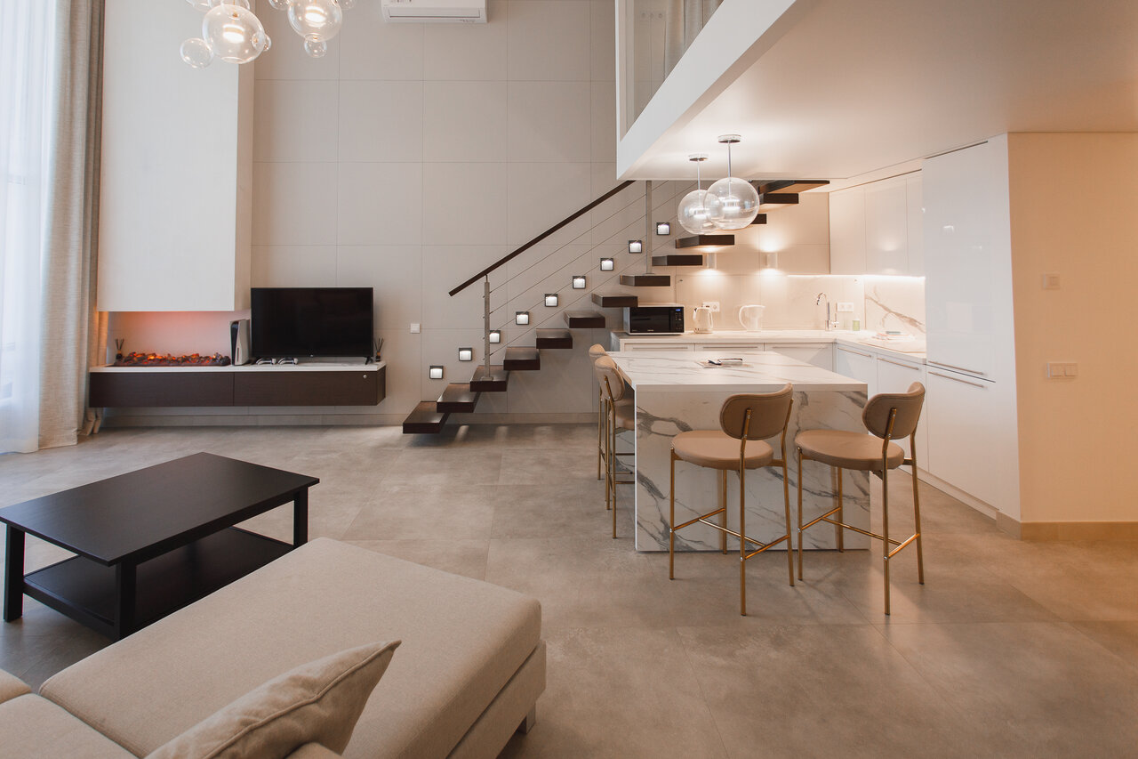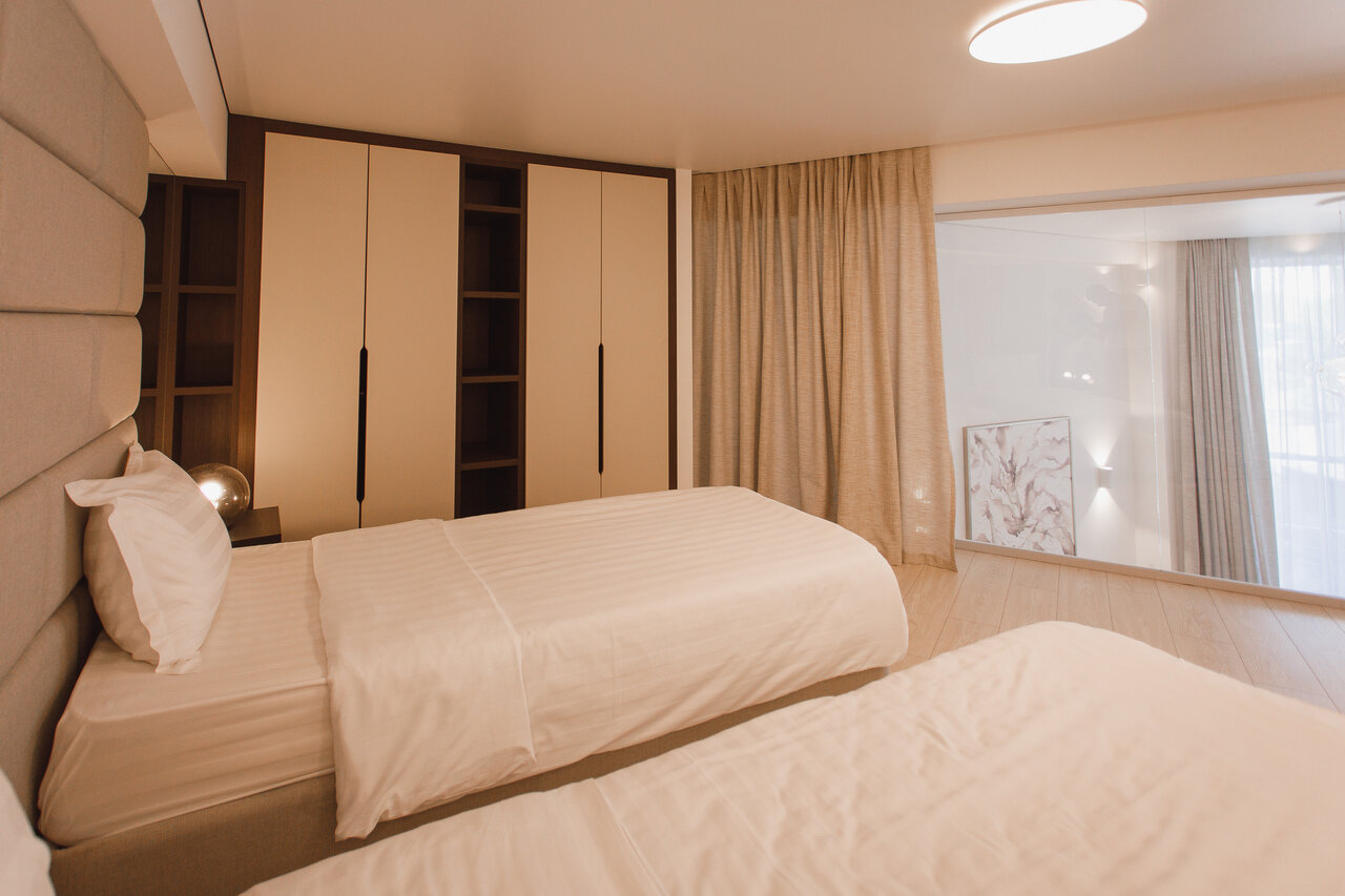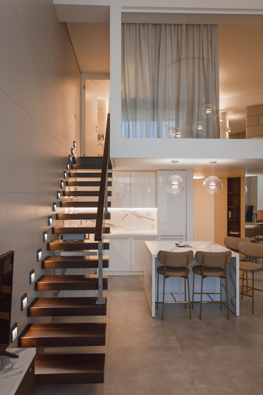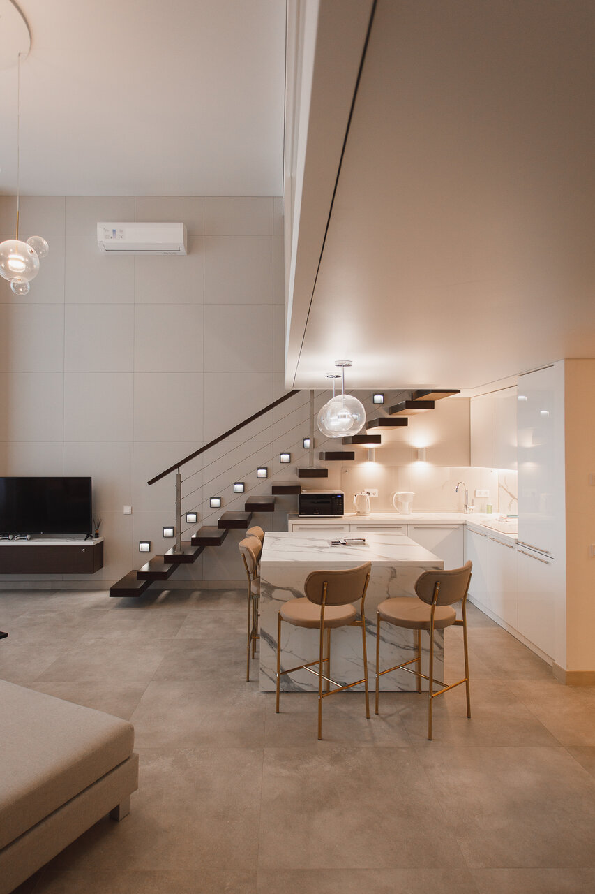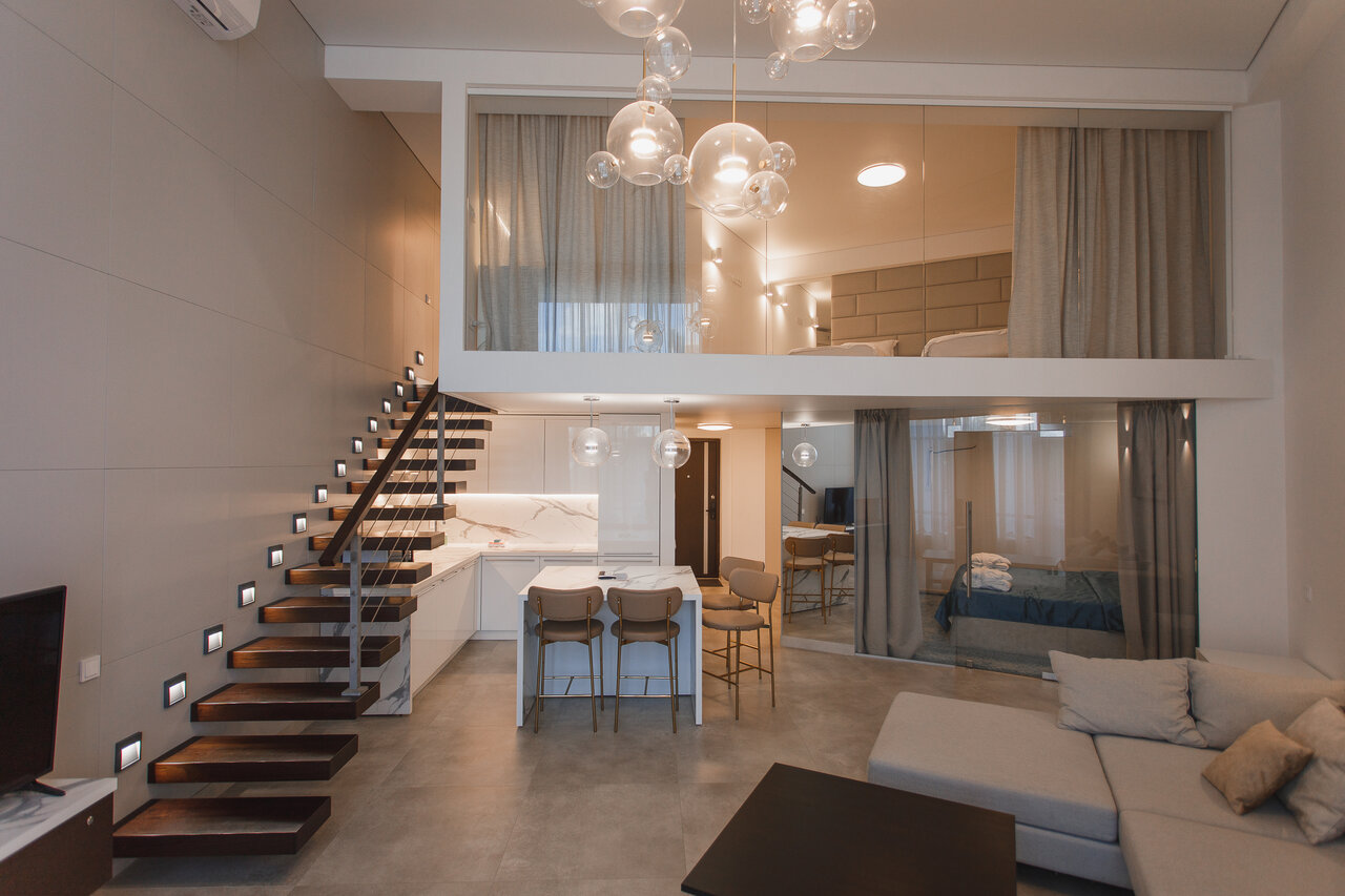 - Просторные двухуровневые апартаменты с двумя санузлами и спальнями.