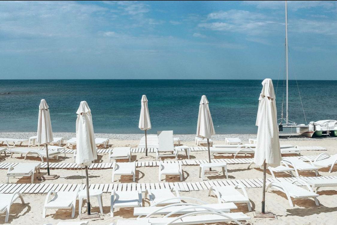 - Собственная пляжная зона с лежаками и зонтами.