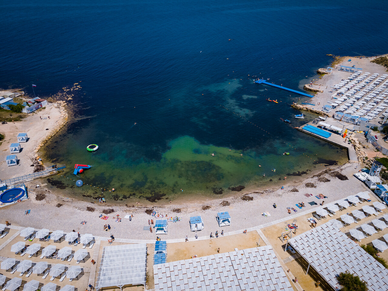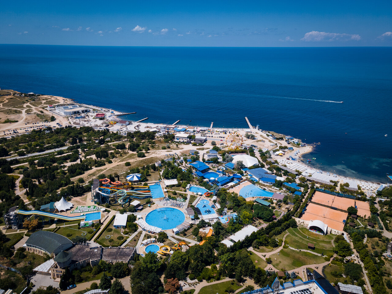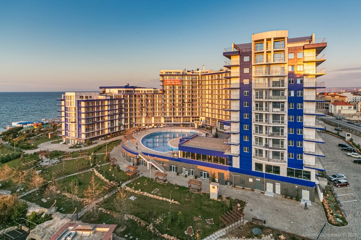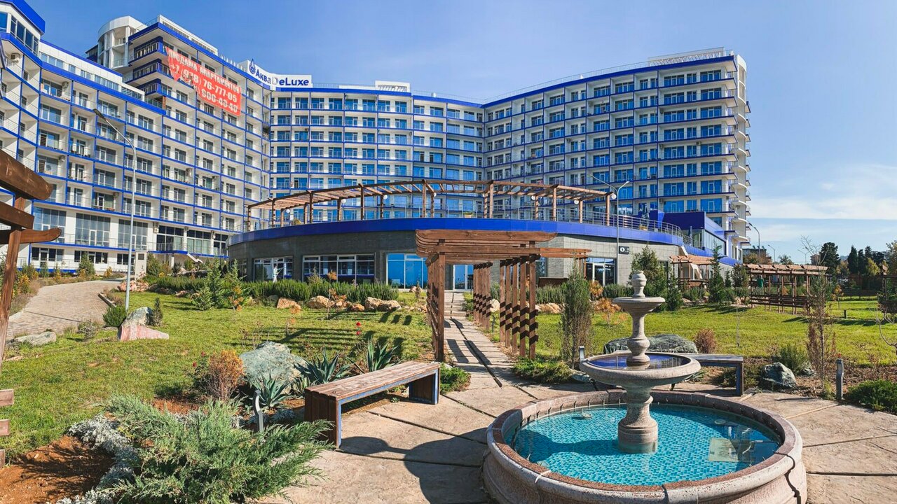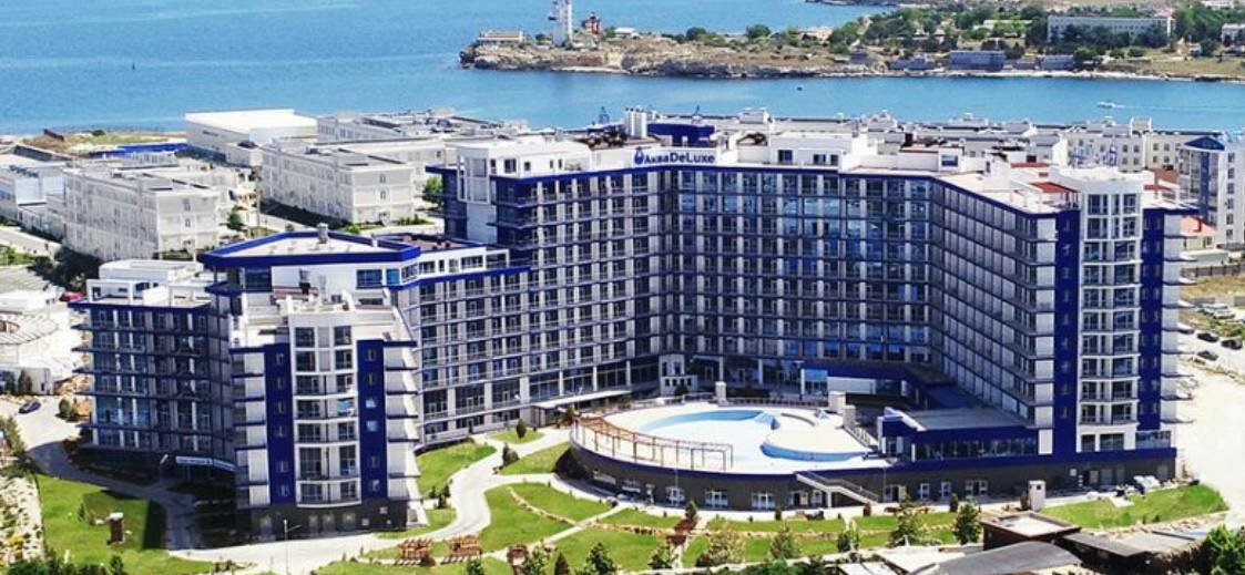 Немного ‘Аква’ и совсем чуть-чуть ‘ Делюкс’, если не сказать, что больше ‘Понт’, чем ‘Люкс’. Для фотографии в инсте и сториз тут есть где разгуляться. С другой стороны тут чуть ли не единственный в Севастополе пляж и нормально искупаться в чистой морской воде не выйдет. Первый этаж напоминает торговый центр. Все как-то пестро и вычурно. Соседствуют на первый взгляд несовместимые организации с пустыми помещениями вообще без ремонта . Например, агентство и частная клиника зарабатывающая на людях страдающих варикозом, а рядом с ними голые перекрытия и стены без штукатурки виднеются. Короче, потенциал есть, но пока сыровато за такие то деньги, лет через 5-6 возможно будет получше.