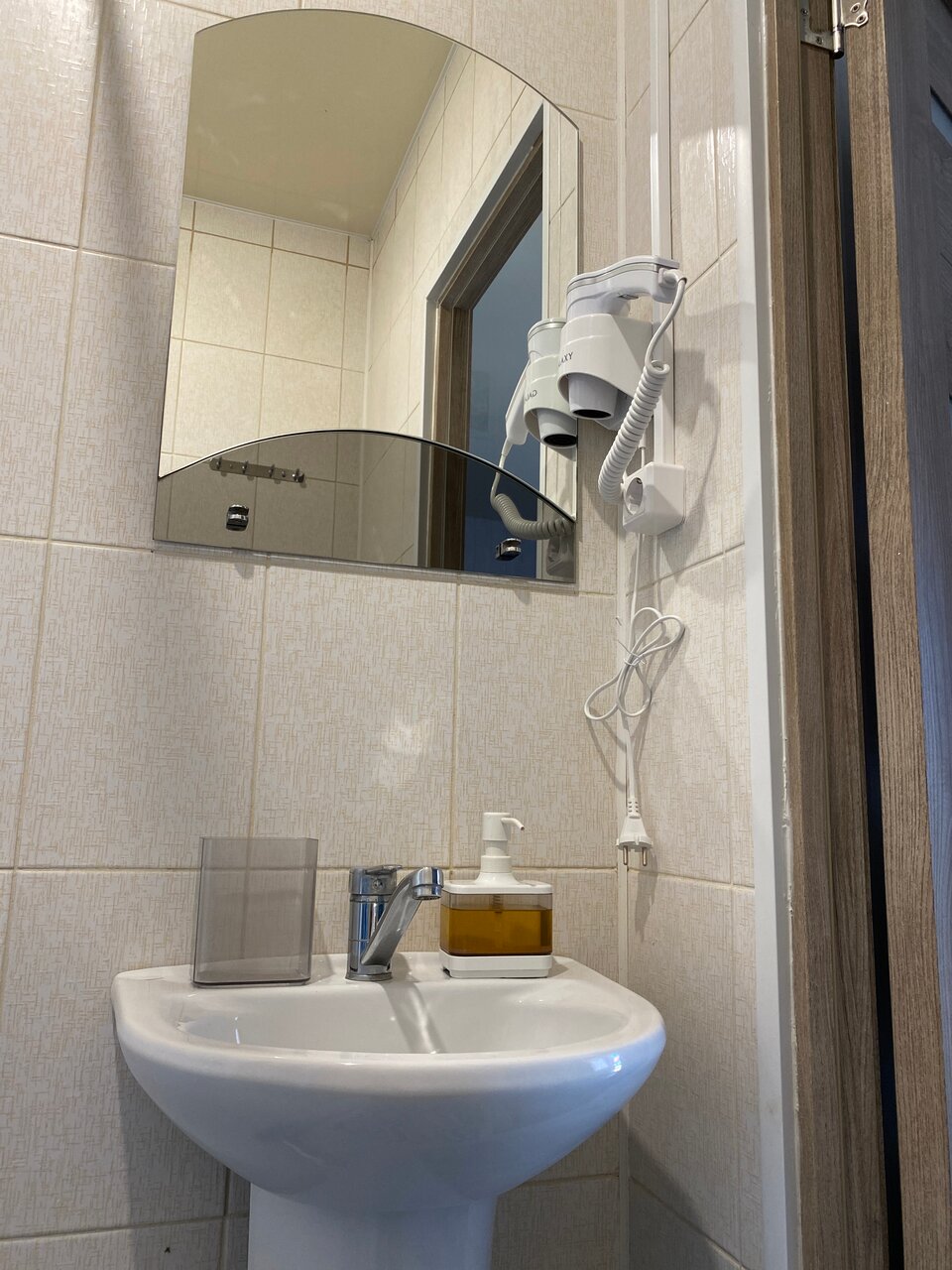 Уютная комната для двоих . Наполнение : 2 односпальные кровати, ковролин, прихожая, зеркало, мини холодильник, LED телевизор, постельное белье, полотенца. Ванная комната расположена на этаже.