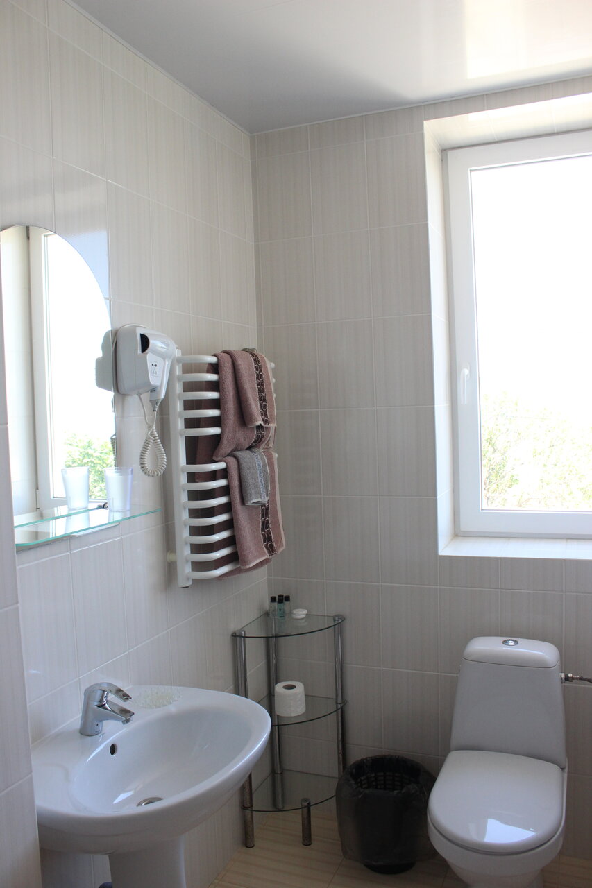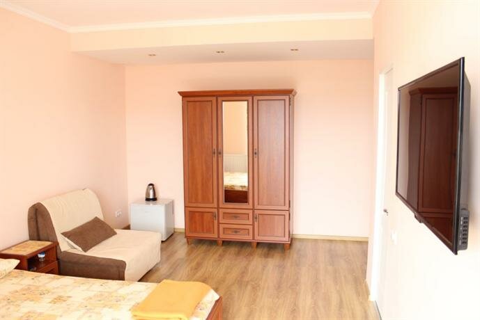Отличный отель, приветливые внимательные владельцы. Чисто, уютно, ежедневная уборка номеров. Есть огромная профессиональная кухня, где можно приготовить любое блюдо для себя и близких. Большая уютная столовая. Холодильник, морозильник. Много разной профессиональной посуды. Номера просторные, есть кровать, прикроватные тумбочки, комод, большой шкаф для одежды, огромное раскладное кресло, санузел, балкон. В номере так же, есть телевизор, кондиционер, небольшой холодильник, чайник. На балконе стеклянный стол, несколько пластиковых стульев, сушилка для белья. Есть балкон с видом на море. Имеется выход на крышу, где стоят шезлонги. На большом дворе стоит мангал. Имеется парковка. Пляж в трех минутах ходьбы. Рекомендую данный отель, как одно из немногих мест в Севастополе, где высокий уровень сервиса.