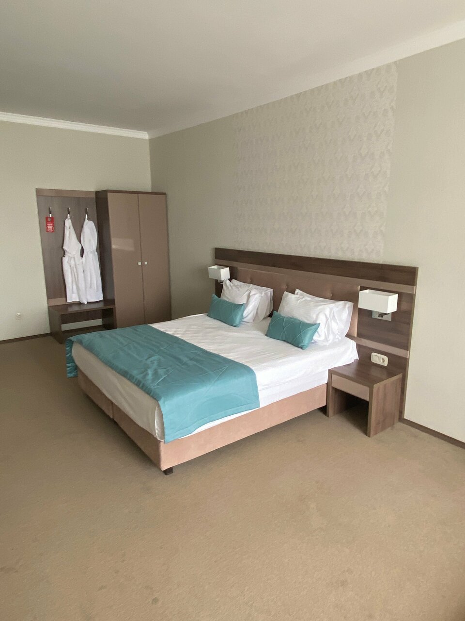 В инфраструктуре: крытый подогреваемый бассейн, SPA-центр с сауной, хаммамом и массажем, ресторан, кафе, бар, терраса и бесплатная парковка. Для гостей доступны завтрак (по меню), трансфер (платный), детские услуги (площадка, меню, кроватки) и пляж в 35 м от отеля.