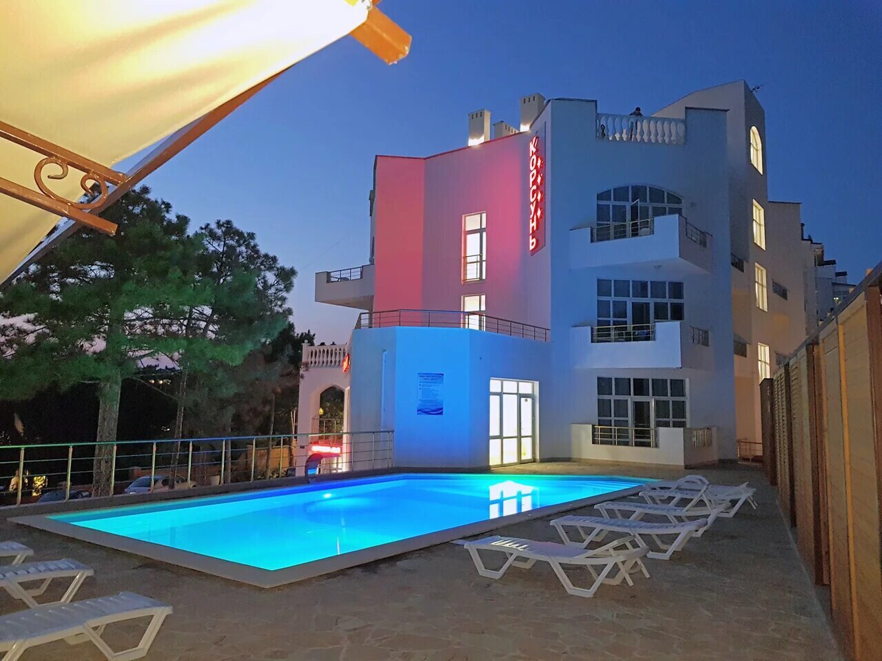 - Возможность выбора пляжа (песок или галька).; Удобная парковка.; Вежливый и доброжелательный персонал.; Близость к морю (3-5 минут до пляжа).; Наличие бассейна (иногда с подсветкой).