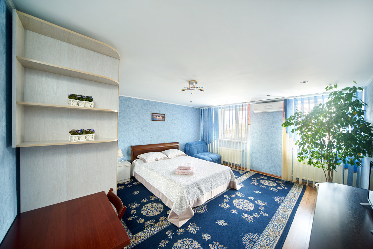 Включает в себя следующее:телевизор с плоским экраном и кабельным ТВ;двухспальная кровать с ортопедическим матрасом;кресло кровать;письменный и журнальный стол;шкаф для одежды;для Вашего удобства в номере полы с подогревом и сейф;