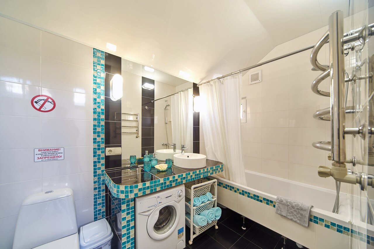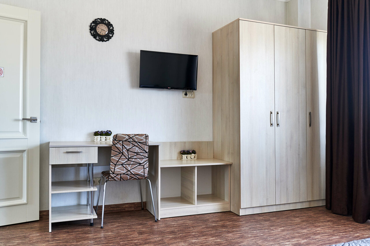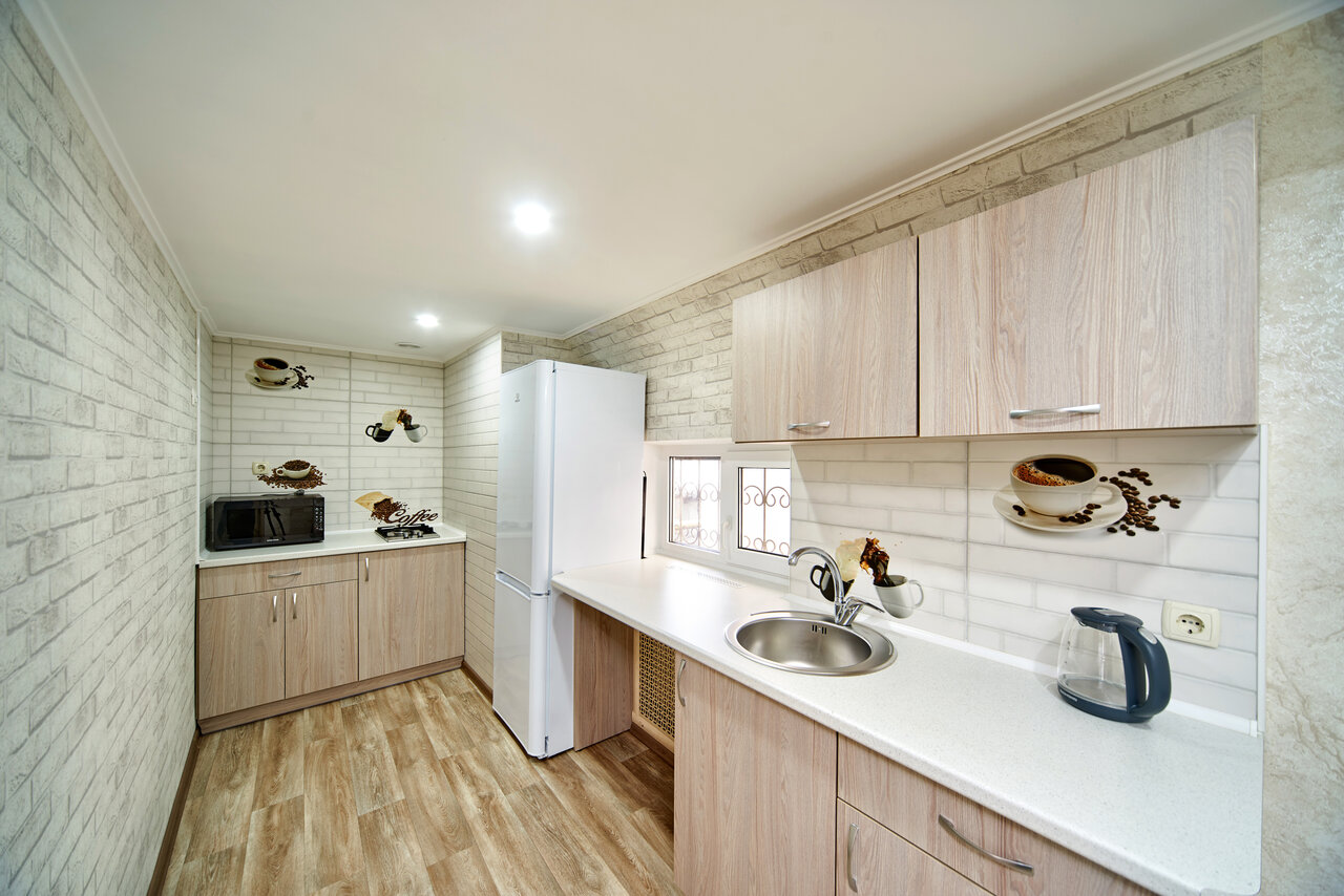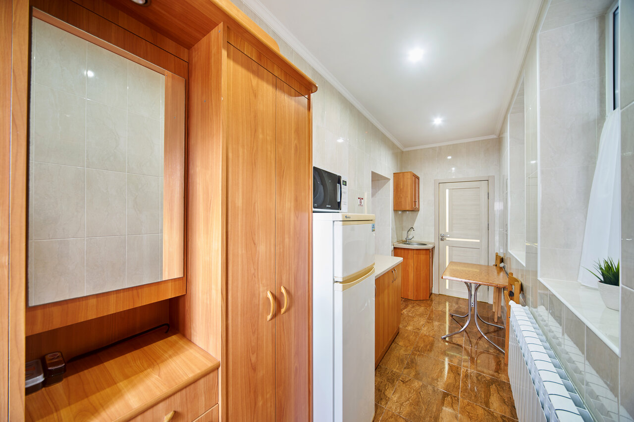 - Хорошая оснащённость номеров (кухня, техника, сантехника, Wi-Fi).
