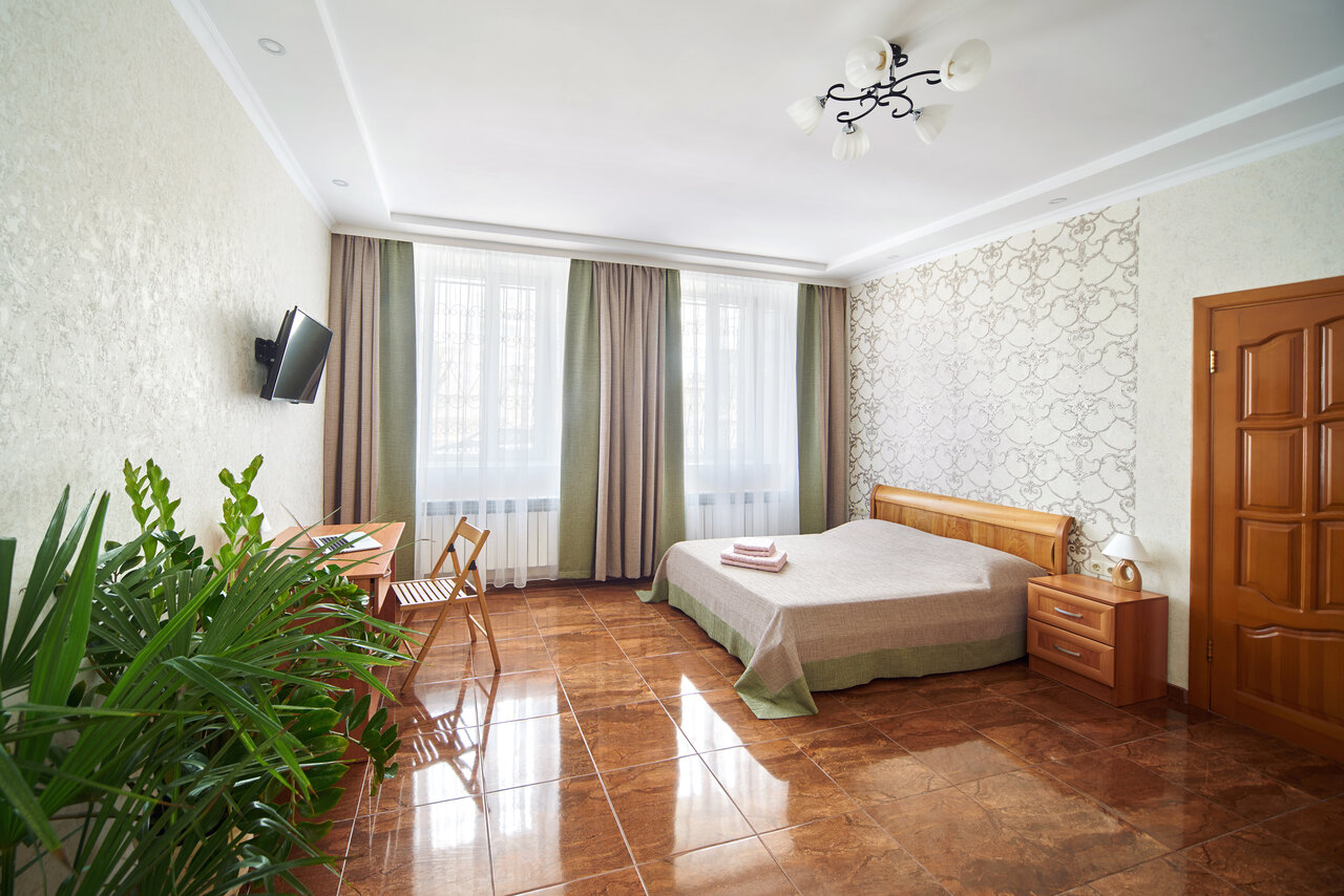Очень уютная чистая гостиница! Хозяева приветливые, следят за порядком. Ремонт свежий, мебель новая добротная. Рядом есть все необходимое (рынок, кофе от городской гостиницы — завтрак, обед, ужин) есть кафе рядом. Территория закрыта, есть мангал. Место для парковки имеется.
