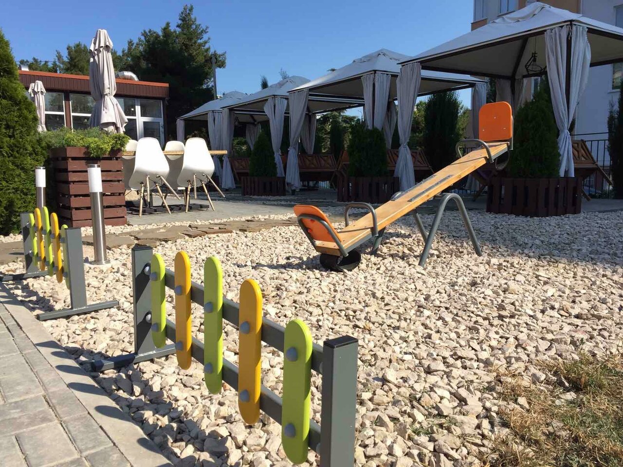 Удобства: — Собственный галечный пляж, платный трансфер, бесплатная парковка. — Ресторан, бар, кафе, банкетный зал, конференц-зал. — Услуги для детей: площадка, меню, кроватки (бесплатно до 3 лет). — Прачечная, прокат авто, химчистка, сейф, камера хранения.
