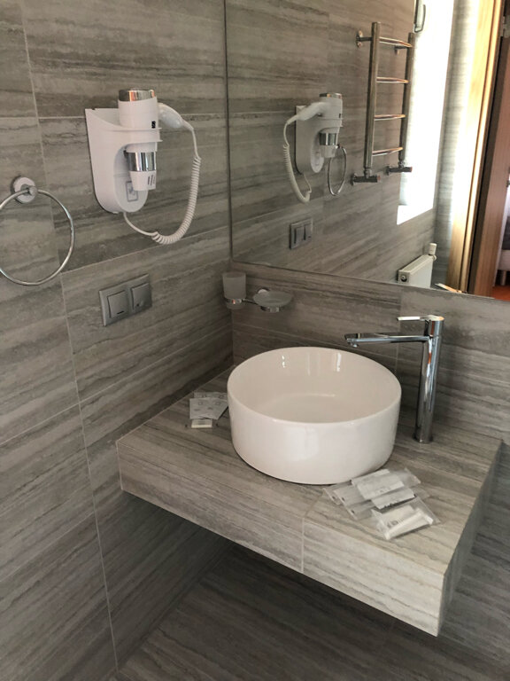 Прекрасный отель. Явно сделан по продуманному проекту, не самопал. Удобные номера, ухоженная красивая прилегающая территория и двор, явно поработал ландшафтный дизайнер. Само здание и номера отделаны не дешевыми материалами. Сантехника супер, не эконом. Мебель в номерах и матрасы отличные. Продуманная вентиляция в номерах и санузлах — важно ( нет плохих запахов и приятный климат в номере. Парковка во дворе под шлагбаумом. В номере есть все — одноразовые комплекты , начиная от тапочек. Возможна оплата картой. Документы для отчетов по командировке. Есть очень приятное кафе. Сейчас это редкость , чтобы так заморачивались с гостиницей . Обычно — колхоз , все самое дешёвое, а оплата естественно по полной. Особенно это практикуется на Юге, типа в сезон будут рады и этому . Так что отёл ОСЕНЬ приятно удивил. Цены обычные , а то и дешевле. Рекомендую.