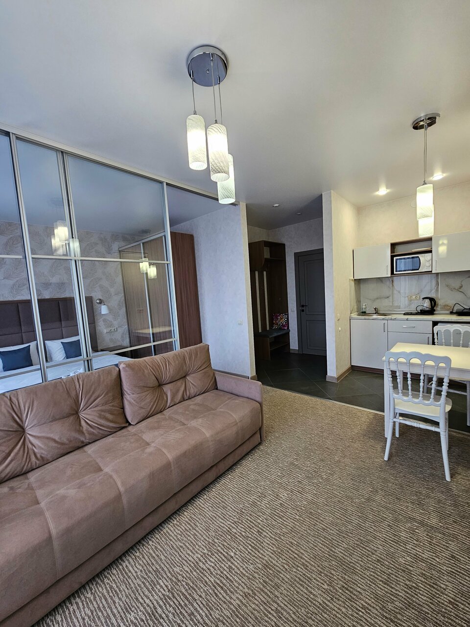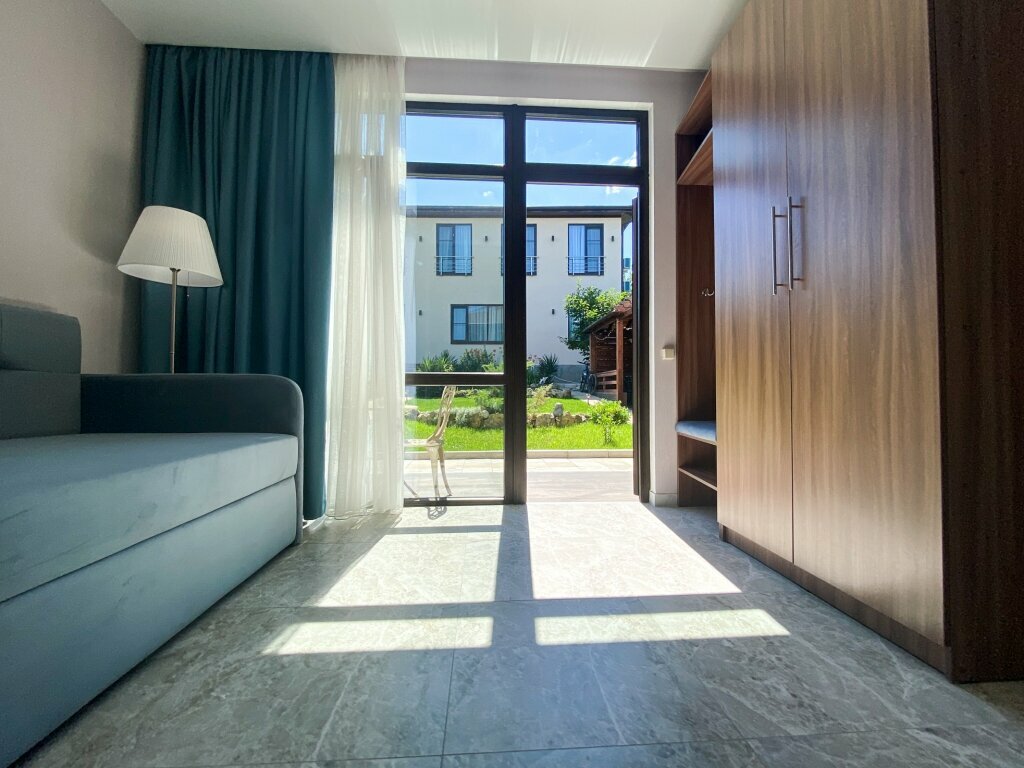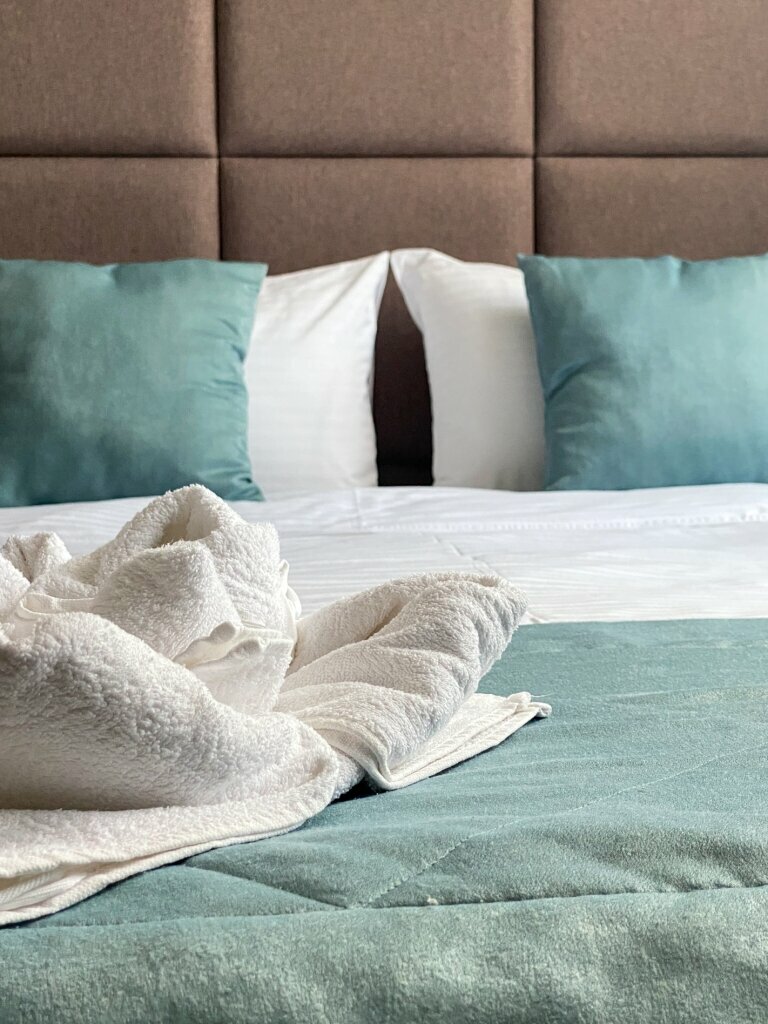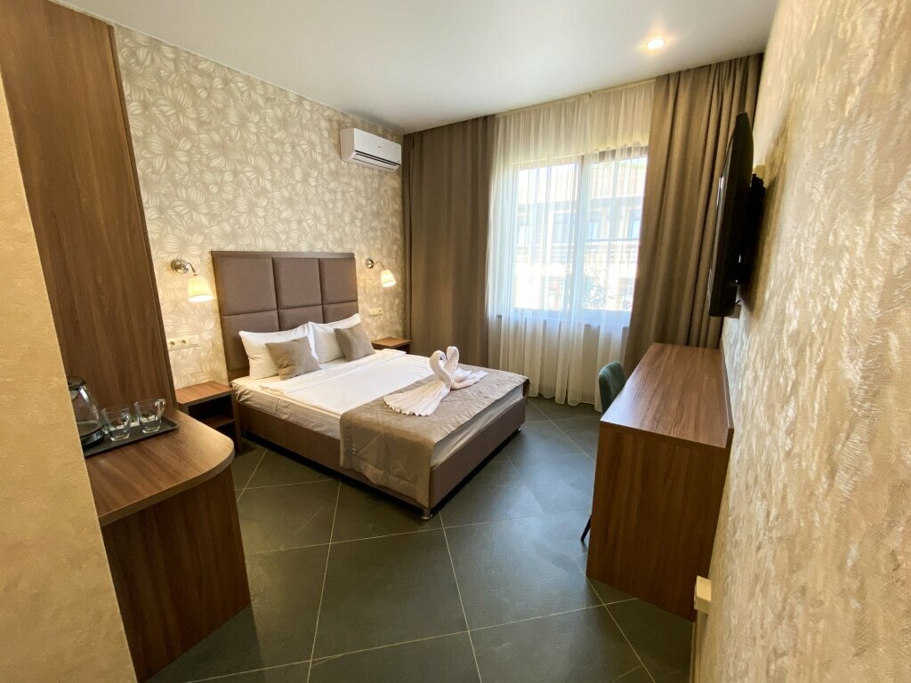 Прекрасное место)Вернёмся ещё ,обязательно.Чистые новые номера,мебель, хорошее постельное белье.Чистота в номере и на пр летающей территории. Владельцы прекрасные вежливые люди.Есть парковка.До моря недалеко ,минут 7 ходьбы.На пляже есть все. Есть даже мини супермаркет,где есть все от детских игрушек до алкоголя,гастрономический и молочки.