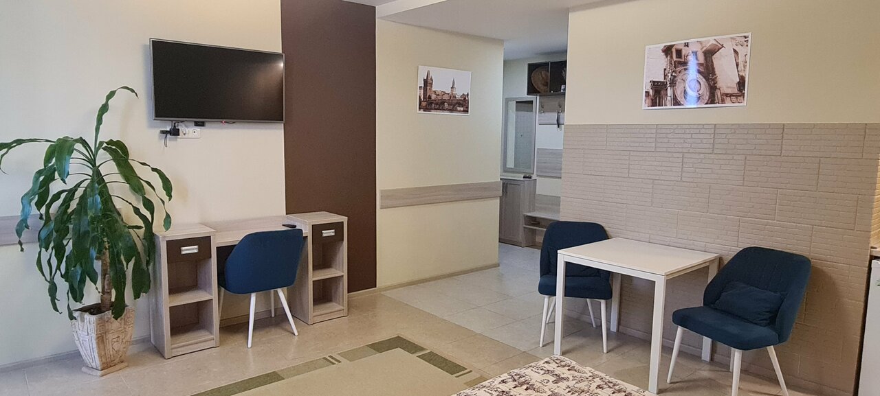 Проживали 5ть дней семьей остались довольны. Все есть и все работает , все рядом. Татьяна все инструкции по заселению написала на вацап и выслала фото , как подьехать к центральному входу. в номере чисто и все по-домашнему. Хотим сказать спасибо за тех.воду, была авария в городе и не было целый день воды, Татьяна с мужем позаботились и принесли три боклажки воды., приятно .