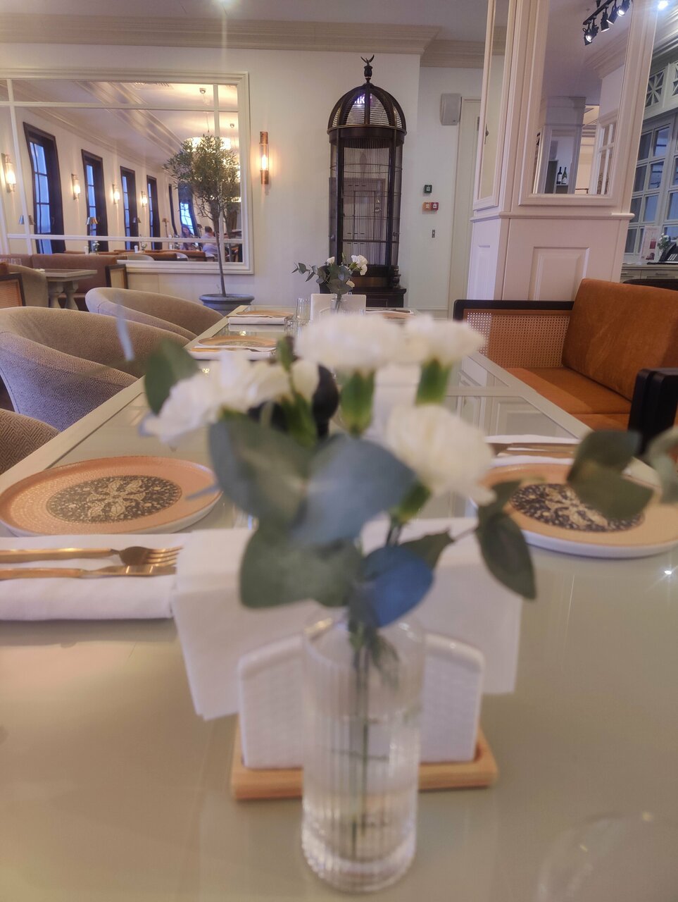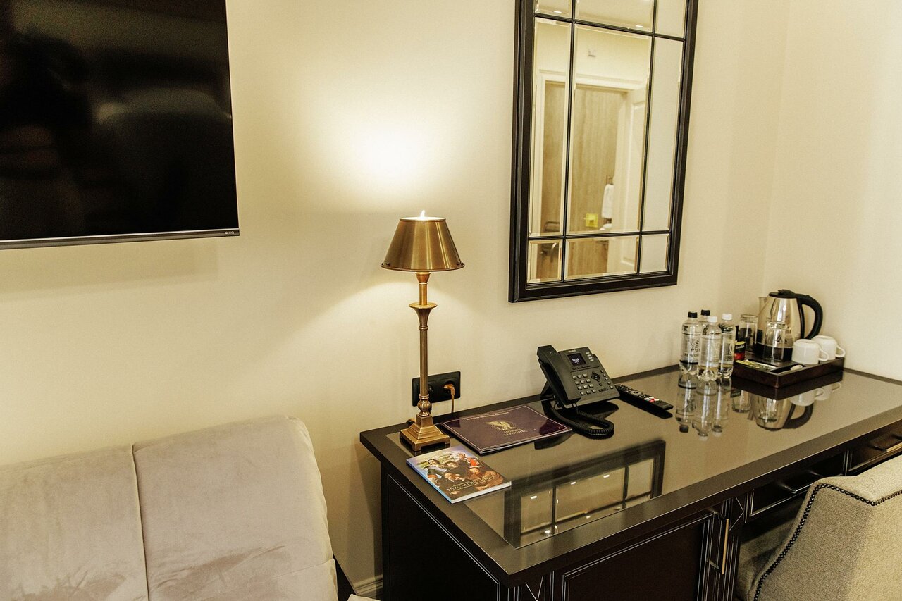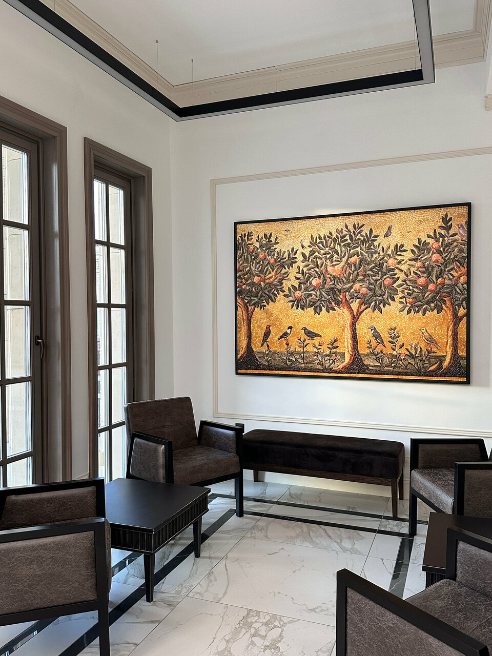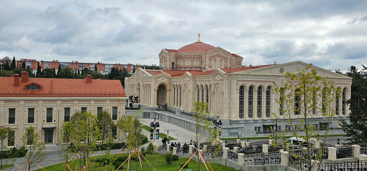 Отель и территория просто супер! Оформлено в классическом, историческом стиле, всё новое — комфортно, красиво, на высшем уровне! Хотела отметить особое приятное внимательное отношение к детям, в номере для удобства был детский набор — щетка, паста, гель и шампунь, подставка для ног к раковине и сидение для туалета. Особенно умилил детский халатик, не видела такого в других отелях. В ресторане Омега был подарочек после обеда для ребенка — очень приятно! Вообще кухня в Омеге очень понравилась — вкусно, быстро и внимательно обслуживают. Были даже свежие устрицы!Спасибо! Территория просто сказка — гулять и гулять! Мы в восторге! И сами здания в византийском стиле и ландшафтные решения, фонтаны, канал с карпами и скульптурами писателей, детские игровые площадки и огромное количество прекрасных посадок! И в конце выход в старый Херсонес, который тоже замечательно облагородили, но и сохранили то что было раньше. Вернемся обязательно еще не один раз!