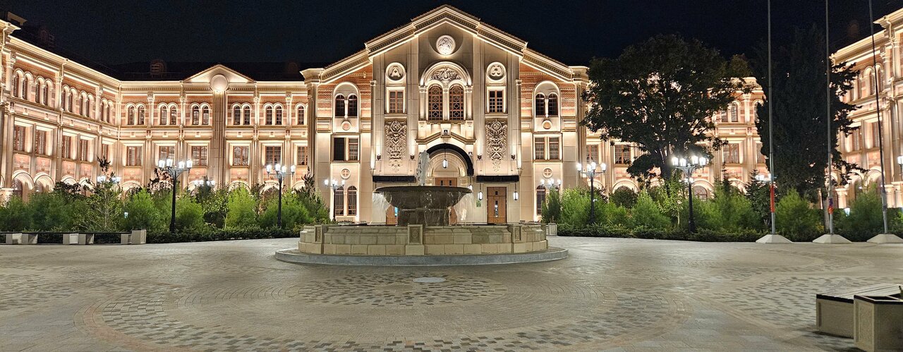 Красивое место, интересная архитектура, различные статуи, фонтаны и пруд с рыбками. Особенный шарм территория приоритет вечером, когда зажигаются огни.