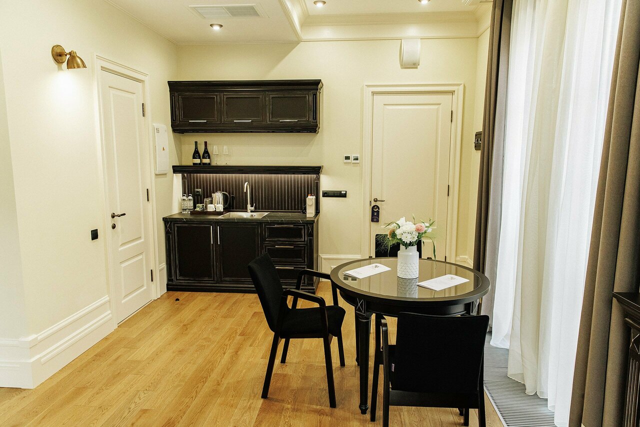 Удобства: — Просторные номера с кондиционером, Wi-Fi, мини-баром, телевизором и видом на море. — 3 ресторана, 3 бара, кафе, банкетный зал, доставка еды в номер. — Бесплатная парковка, трансфер (платный), велопарковка. — Услуги для семей: детские кроватки, меню, площадка, люльки. — Развлечения: театр, дегустации, вечерние программы. — Конференц-зал, прачечная, камера хранения, сейф.