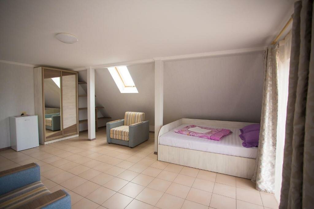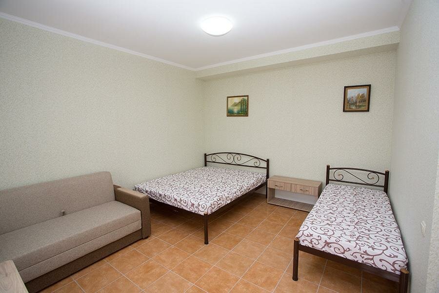 В номере: Одна двуспальная и односпальная кровать или двухъярусная двуспальная кровать, раскладной диван или кресло, шкаф, санузел, холодильник, кондиционер, телевизор, сейф, wi-fi