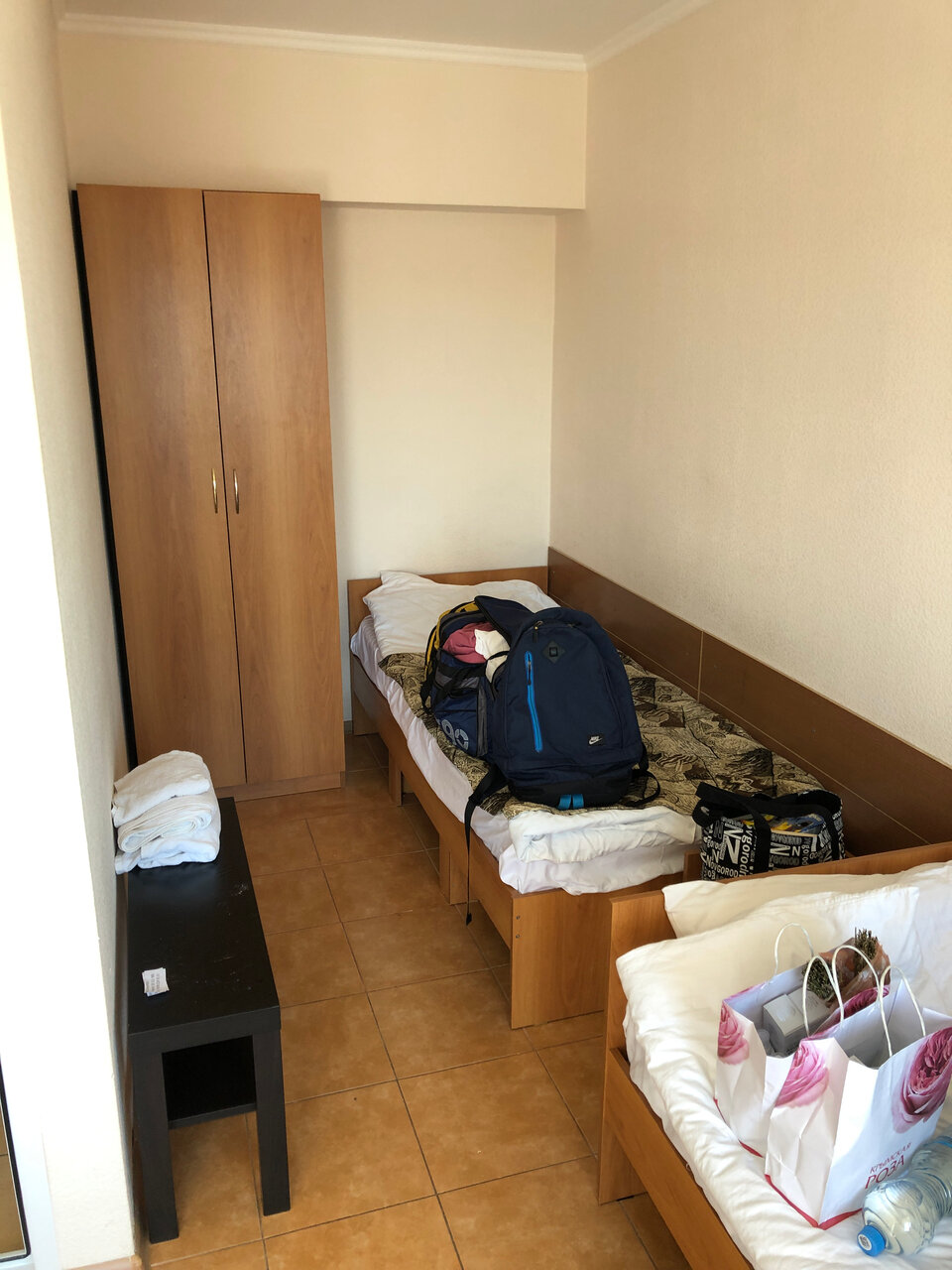 Всё гуд. Номера не самые большие. Но уютно. бельё постельное чистое. Вода есть и горячая и холодная. Размещают в любое время. При наличии номеров.