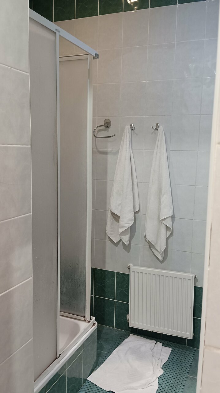 Я в шоке…такой грязной душевой кабины даже на трассе не видел, ну и дыры на покрывале и ргязь на полу