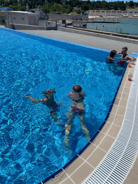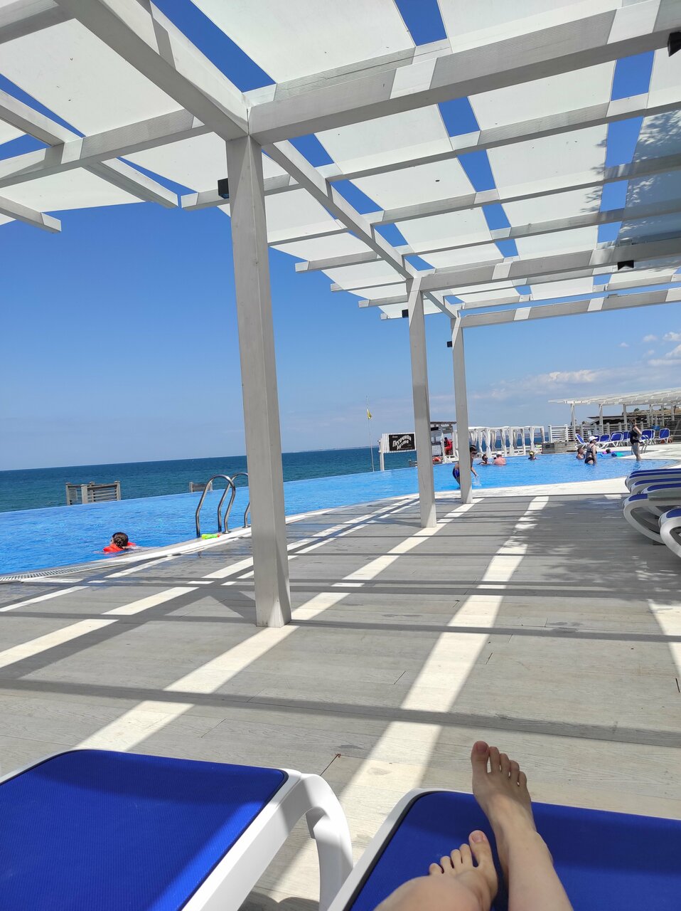 Из отеля сделали проходной двор!за что мы платим порядка 10 тыс в сутки?чтоб ютится возле бассейна рядом с теми,кто платит по 1000-1500 р и ведут себя ужасно!пришедшие на разовое посещение и маты и вейпы,и ноги женщины до головы задирают,и в бассейн не пройти, разлягутся на ступенях или лежак ставят чуть не в бассейн!Дети со сворой игрушек и матрасов по 2 штуки, все это в бассейне!бассейн 35 метров,а пускают больше 100 человек, постояльцев из них пару человек!Заплатили деньги,а по факту пришли на городской пляж