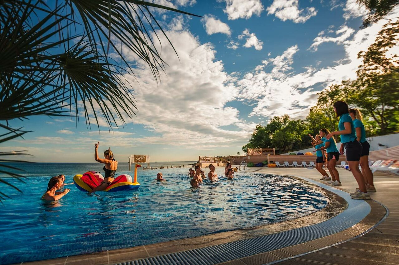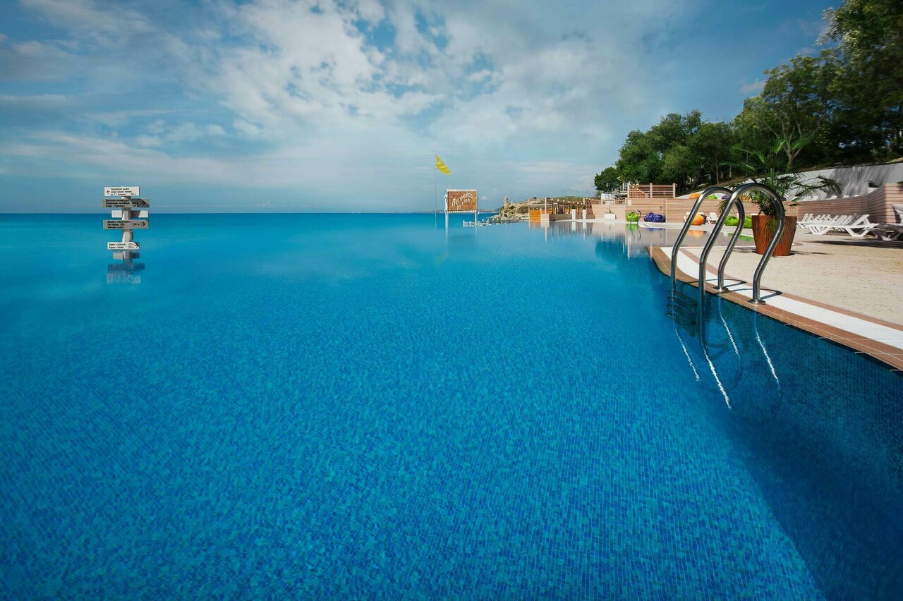 - Благоустроенная территория с павлинами.; Качественный массаж (отдельно отмечена Алла).; Два бассейна.; Собственный пляж.; Бассейн соответствует мировым стандартам.