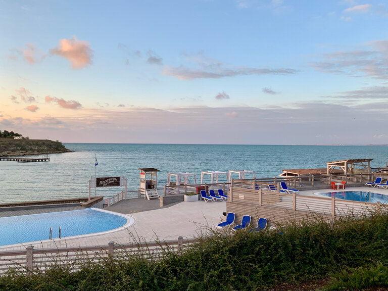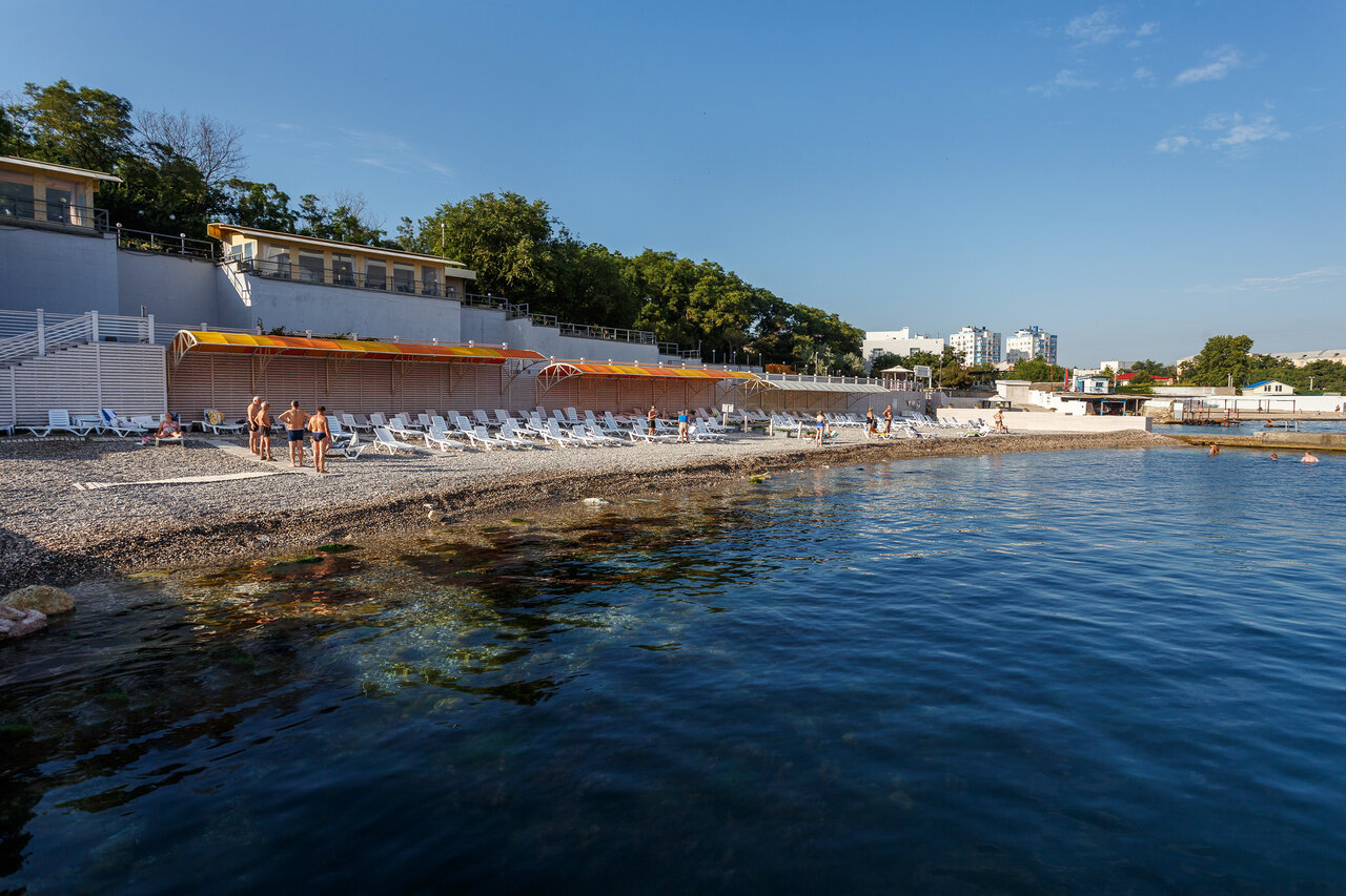 - Комфортный пляж с лежаками и видеонаблюдением.