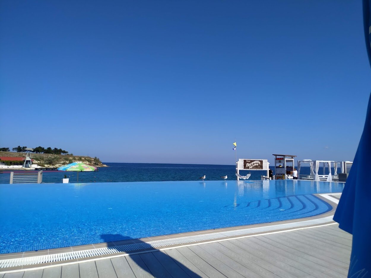 Посещал этот отель по дневному абонементу, территория благоустроена, все чисто, ходят павлины, практически ручные. Есть медицинский центр, спа, массаж ручной и аппаратный, фитнес зал. Два классных бассейна, кафе на пляже. Пляж комфортный, мелкая галька, лежаки, кабинка для переодевания, туалеты. Зона пляжа под видеонаблюдением, можно свободно плавать в море, не опасаясь за сохранность вещей.
