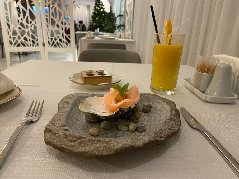 Был в отеле зимой 2021 г. В номере холодно, батареи еле теплые. Работали два ресторана: Шафран и ресторан отеля, цена за ужин без спиртного 1500 — 2000 руб. В Шефране крымско-татарская кухня, готовят вкусно. Завтрак по системе шведский стол, выбор большой, вкусно.