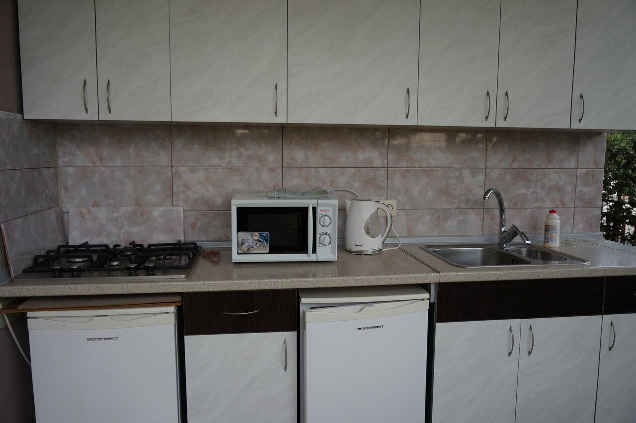 Уютный номер со своей кухней, очень удобно. Красивый зелёный двор, много игрушек для детей. Можно заказать обед, готовят вкусно. Уборка в номере каждый день. Радушный персонал. В такое место хочется возвращаться.