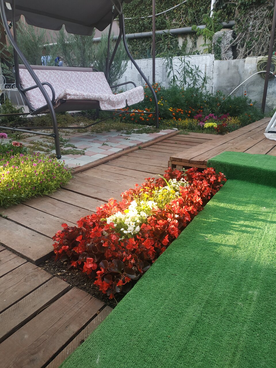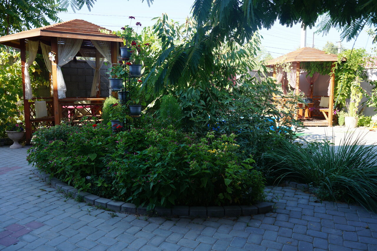 Очень хороший гостевой дом! На территории 3 беседки, детский бассейн, мангал со всеми принадлежностями, есть туалет и душ на территории, т.е. не надо ходить в номер если находитесь в беседках. Ежедневная уборка в номере и смена полотенец. Ежедневная уборка территории. Много зелени. У нас был номер с кухней, имеется вся необходимая посуда, бокалы, стаканы, вся посуда хорошего качества. Хороший ремонт в номере, мебель. В общем чувствуешь себя как дома. А самое главное это хозяева Наталья и Сергей, большое им спасибо за замечательный отдых.