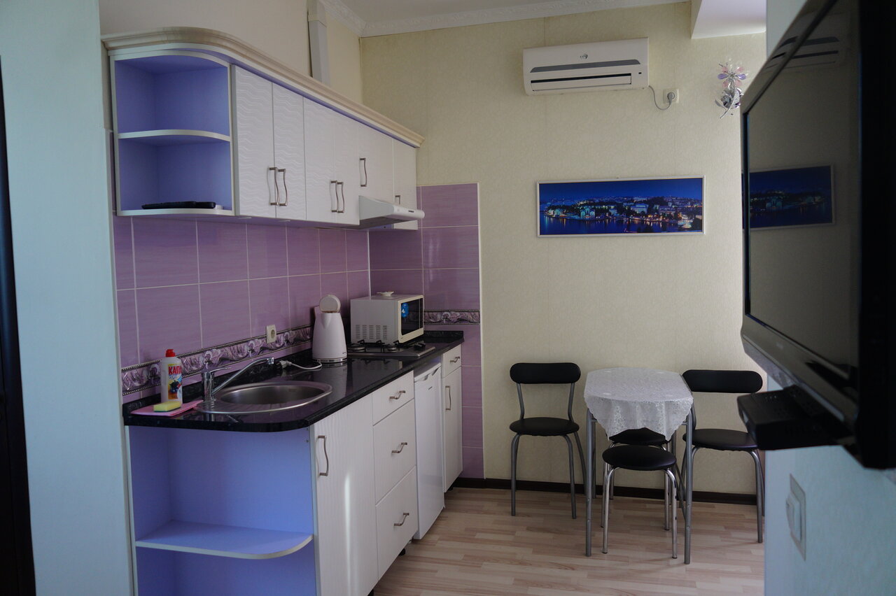 Прекрасное место для отдыха. Сказать, что номера хорошие, не сказать ничего. Роскошные большие комнаты, с качественным ремонтом, хорошая мебель, удобные кровати, работающий кондиционер, на кухне все самое необходимое есть. Ежедневная уборка. Каждое утро мы пили кофе на балконе и любовались видом Севастопольской бухты… Непередаваемые ощущения. Территория чистая, обустроенная, бассейн, шезлонги, мангал. Рядом, в шаговой доступности Севастопольская бухта, где есть магазины со всем необходимым. В бухте даже купались другие отдыхающие. Мы же ходили на пляж, где парк Учкуевка. От места проживания, далековато, конечно. Но прогулка по Севастополю того стоила.