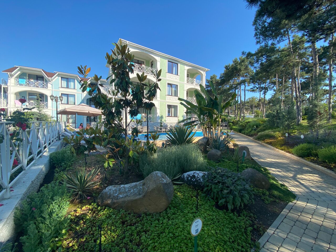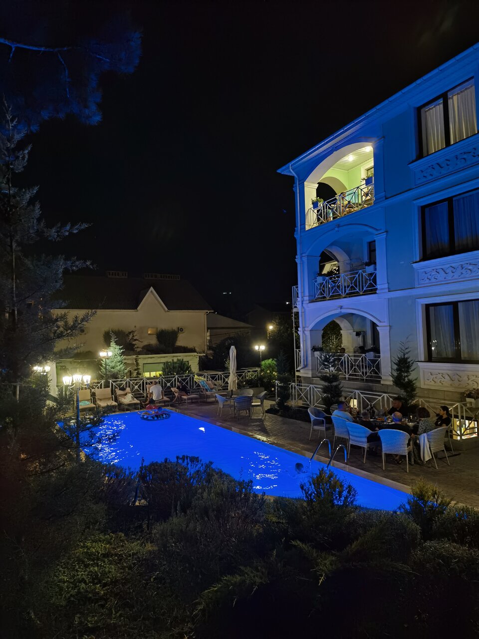 Классная гостиница, очень уютно, достаточно близко до моря (пешком в сланцах пять минут), но до благоустроенного пляжа надо будет ещё немного пройти) но это не страшно Главное что лично мне сильно понравилось — это спа. Там и хамам, и бассейн-джакузи, и парилка! Про зону отдыха с телевизором и про душ я вообще молчу, это само собой разумеется) Зона шашлыков тоже очень хороша) В общем, одно удовольствие!