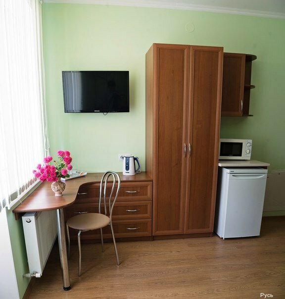 Замечательный отель!Были в сентябре 2014 с двумя детьми(4г и 1г) Приветливый персонал,чистота в номерах и в холле.Особо порадовала кухня — просторная,есть вся необходимая посуда.Без проблем поставили в номер детскую кроватку,мы жили в однокомнатном.Там большой раскладной диван-кровать,помещались вчетвером. Совсем рядом пляж,с двумя малышами недалеко идти. С теплотой вспоминаю этот отдых и если еще будем в Севастополе,только в Русь!
