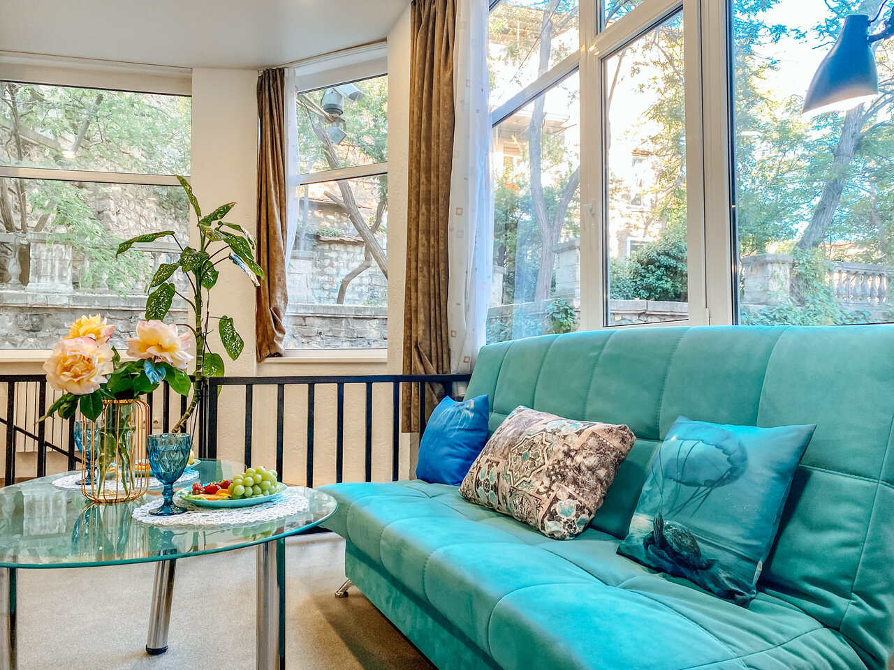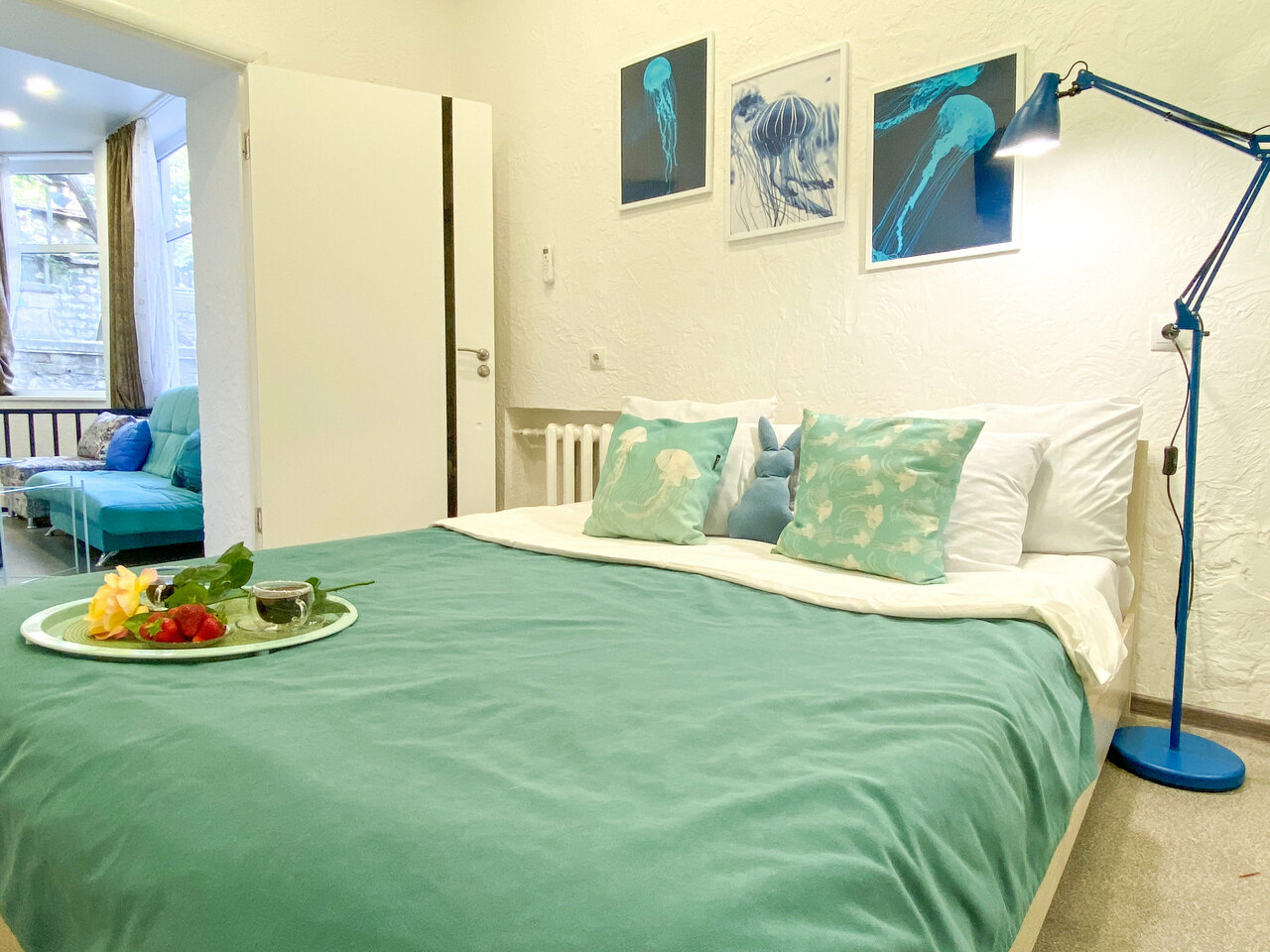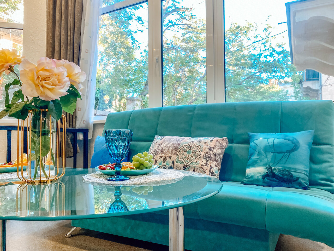 Очень понравилась квартира- безупречно чисто, красиво, уютно. Для постояльцев всё продумано до мелочей- тапочки, чай, кофе, принадлежности для душа, даже ватные палочки, мягкие полотенца) Вся необходимая посуда на кухне, фен, гладильная доска и даже стиральный порошок. Спасибо за такую заботу о путешественниках замечательной хозяйке Юлии. Наши дни в Севастополе были чудесными в вашей квартире. И ещё очень тихо, не слышно шума с улицы, высыпались прекрасно! Самый центр)