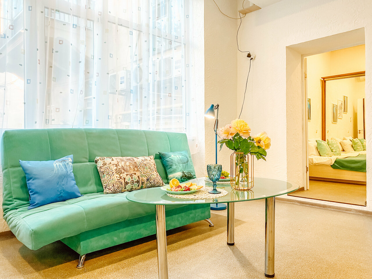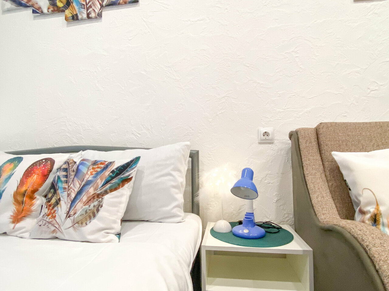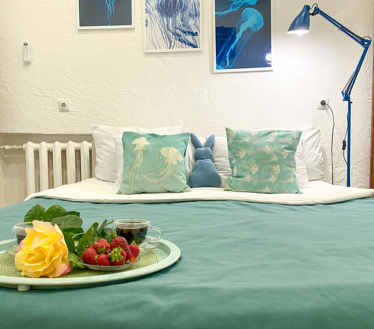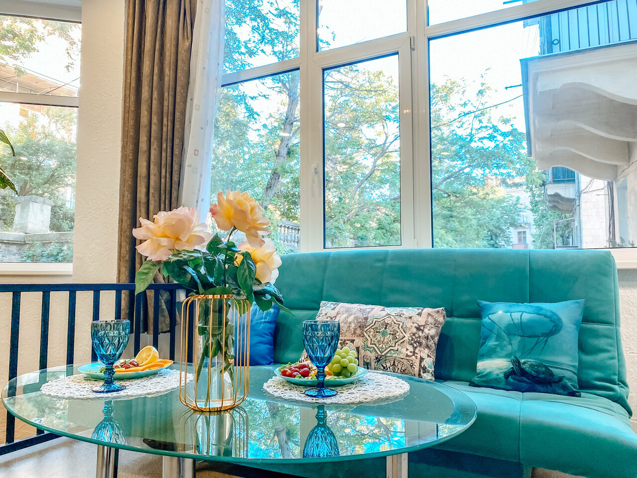 Очень понравилась квартира- безупречно чисто, красиво, уютно. Для постояльцев всё продумано до мелочей- тапочки, чай, кофе, принадлежности для душа, даже ватные палочки, мягкие полотенца) Вся необходимая посуда на кухне, фен, гладильная доска и даже стиральный порошок. Спасибо за такую заботу о путешественниках замечательной хозяйке Юлии. Наши дни в Севастополе были чудесными в вашей квартире. И ещё очень тихо, не слышно шума с улицы, высыпались прекрасно! Самый центр)