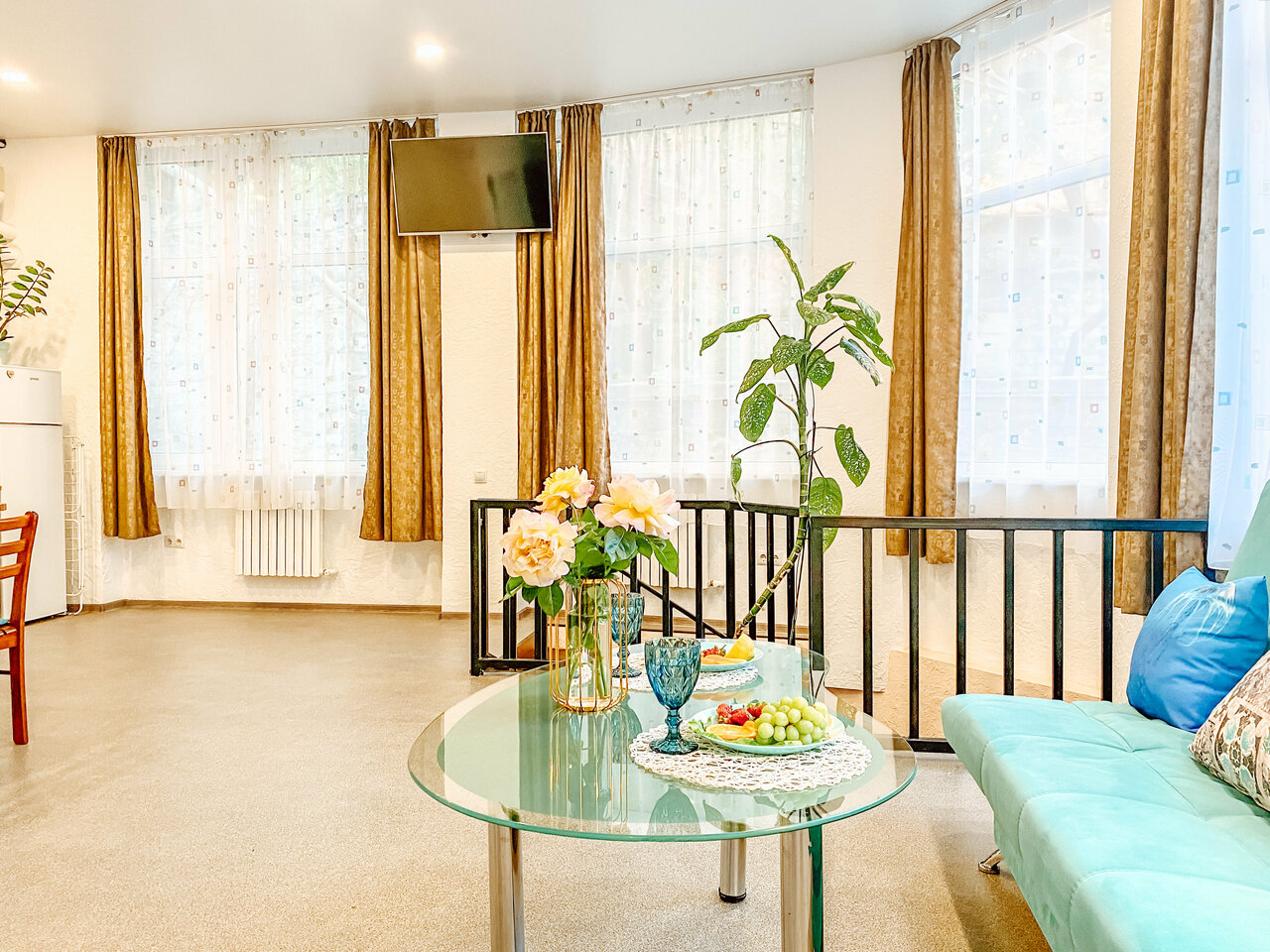 Услуги: — Ночной тариф: 3000–5000 ₽, почасовой: 2000–5000 ₽. — Апартотели с кухней, кондиционером, Wi-Fi, ТВ, санузлом. — Бесплатная парковка, проживание с детьми/животными (платно). — Рядом центр (до 2 км), море, парк.