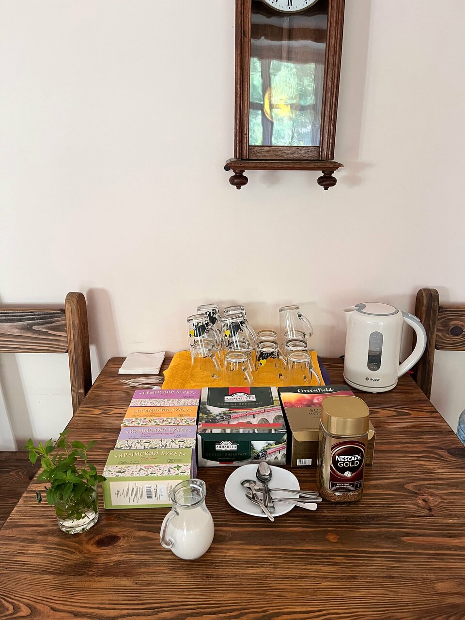 Уютная частная гостиница! Подходит для спокойнойного отдыха. До моря метров 500-700(пляж отличный,море чистое). Территория ухоженная, с 3 мя беседками(разного размера и стиля) есть ‘лобное место’,где можно приятно проводить вечера у костра с мидиями и вином(ну или кто как любит). Номера чистые,современные, убирают каждый день!Единственное находится в глухом посёлке без инфраструктуры, но добраться до центра Севастополь очень просто и всего за 25 р. на пароме или катере. Рядом находится мини парк для прогулок и с игровыми площадками для детей. Так же рядом винный завод. Большое спасибо владельцу Анатолию-очень приятный и отзывчивый, поможет решить любой вопрос.