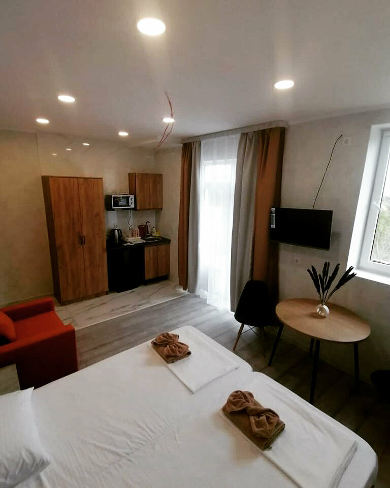 Отличнейший мини-отельчик, очень уютные и чистые номера, адекватный ценник. Есть всё необходимое: кондиционер, душ, туалет, стиральная машинка, холодильник, даже телевизор Мы с мужем находимся в мотопутешествии и заехали чисто на сутки и, сказать, что мы были приятно удивлены — это ничего не сказать. Отдельная благодарность Людмиле Константиновне!!! Очень приятная и добрая женщина, всегда поинтересуется всё ли хорошо, нужно ли что-то и обязательно подскажет то, чего не знаем. Так держать!!! Однозначно 10 из 10.