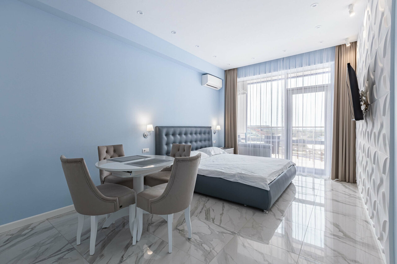 Есть достаточно плохие аппартоменты в том смысле что двери на балкон сломаны плиты варочные треснуты ремонт от горе дизайнеров в котором тяжело находиться! При въезде в номер понимаешь что его убирали неделю назад и уже давно все в пыли ит. д.