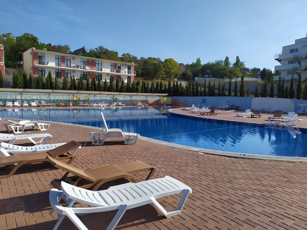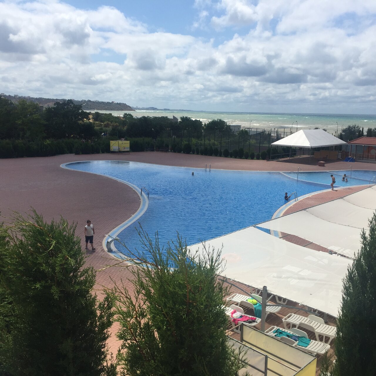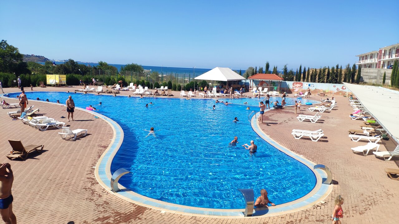 Расположен в районе песочного пляжа Севастополя, на территории много корпусов новых со свежим ремонтом, а такде двухэтажных домиков. Пляж в 2 минутах, бассейн большой, три уровня глубины, бассейн чистый, лежаки. Столовая: 3 разовое питание, шведский стол, ассортимент не богатый, но вполне достойно. Есть анимация, детская площадка, теннисный корт, футбольное поле.