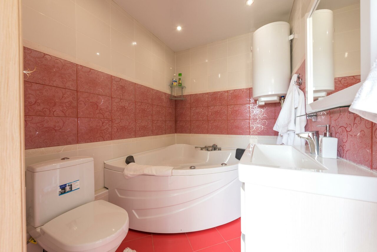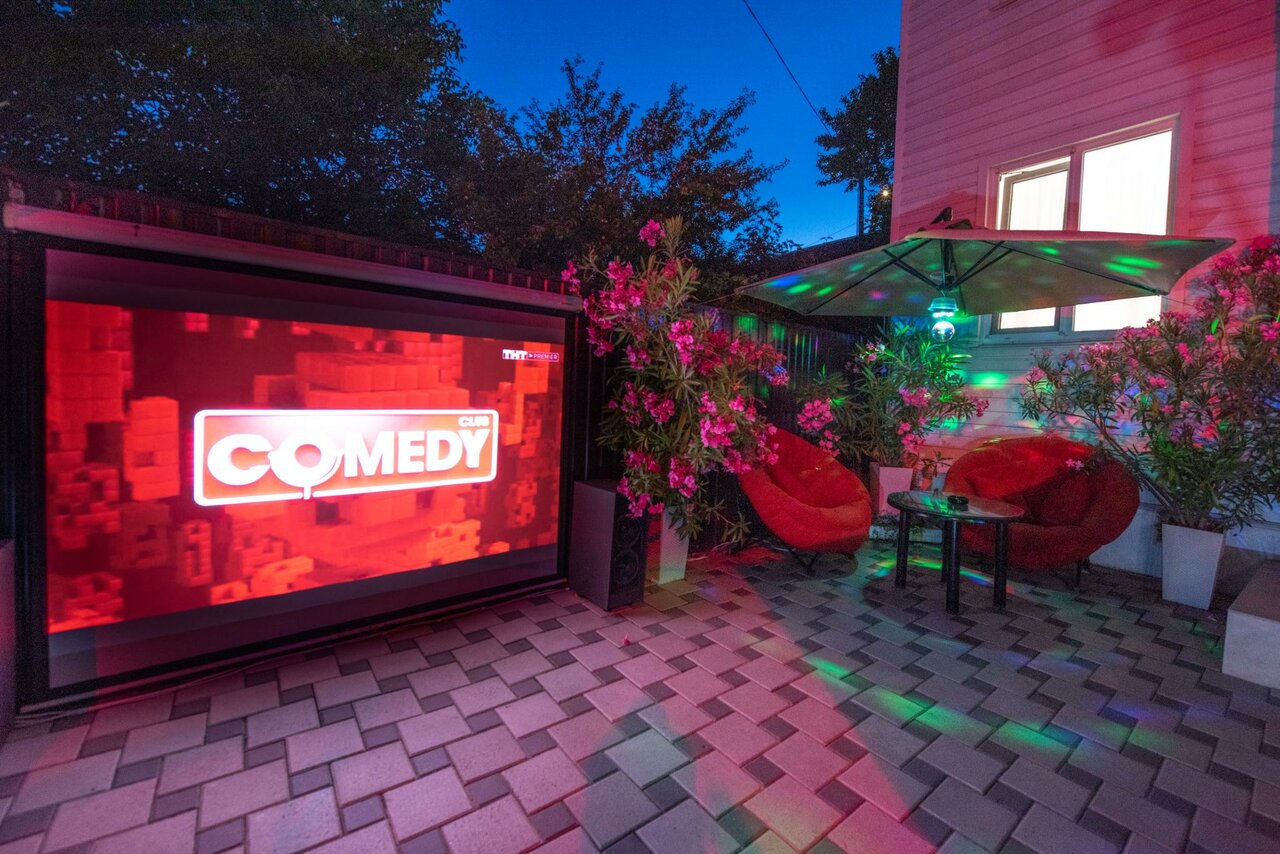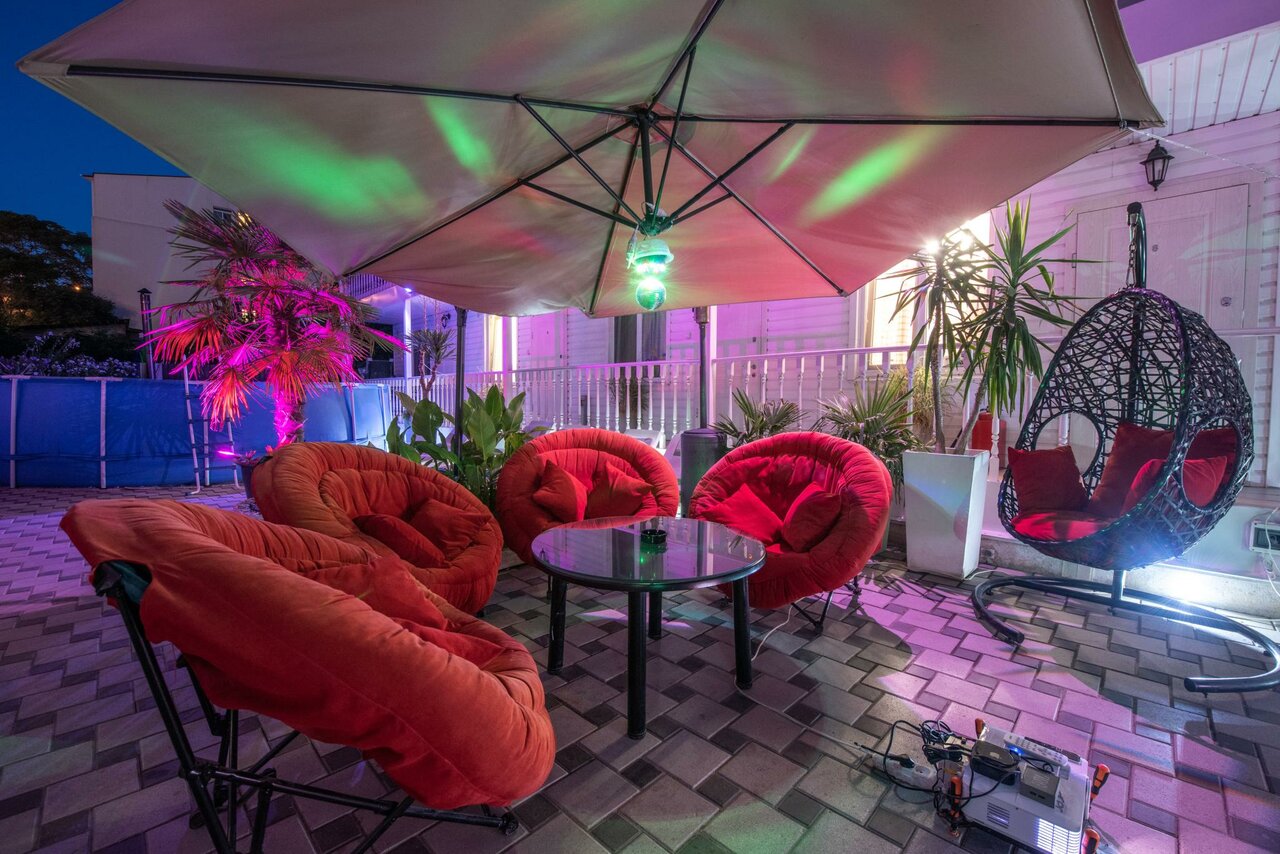 - Возможность дополнительного спального места (раскладушка).; Наличие бассейна и зелёного дворика.; Быстрое и удобное заселение.; Большой телевизор и проектор во дворе.; Приветливый и отзывчивый персонал.