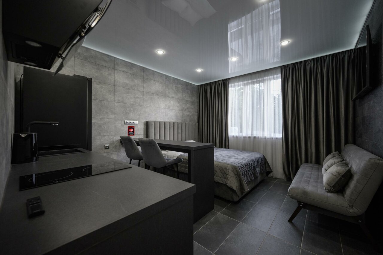 Отлично для ночлега. Заселились в 2 ночи без проблем. Номера уютные, современные, чисто, удобно, продумано. В номере есть все, даже кухня.