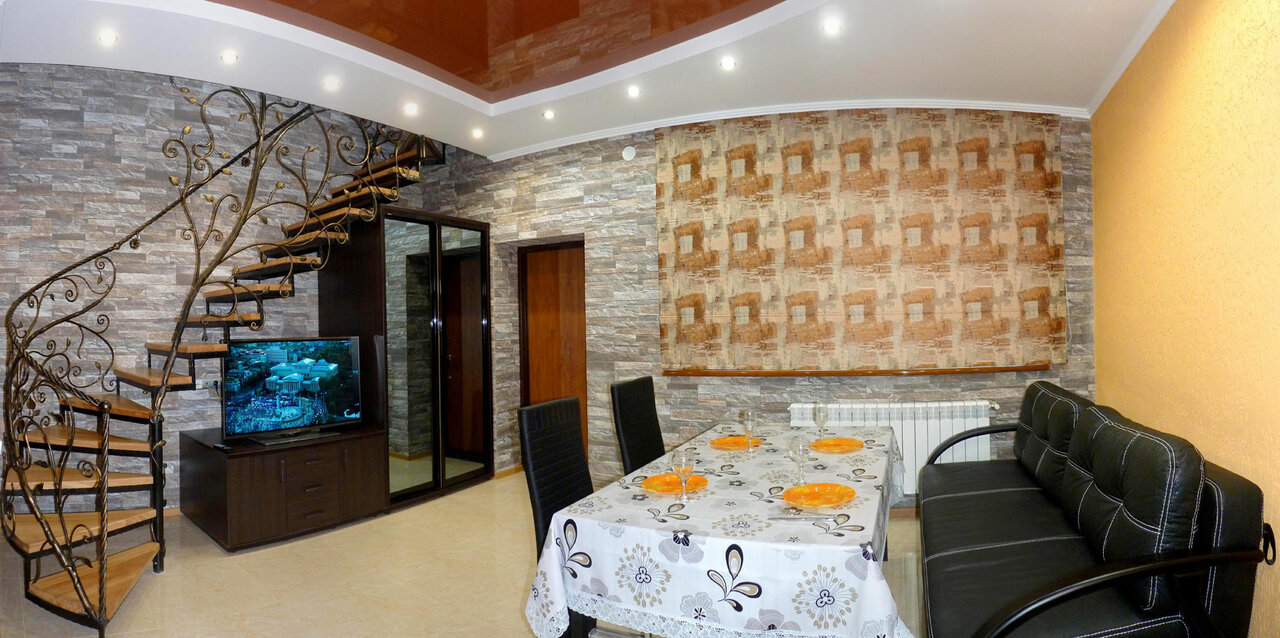 Апартаменты для пары в самом центре Севастополя. Площадь 17 кв.м. Номер оборудован двуспальной кроватью 1,6*2 м., кухней, кондиционером, большим ЖК ТВ 42 дюйма, wi-fi интернет. Есть стиральная машина.