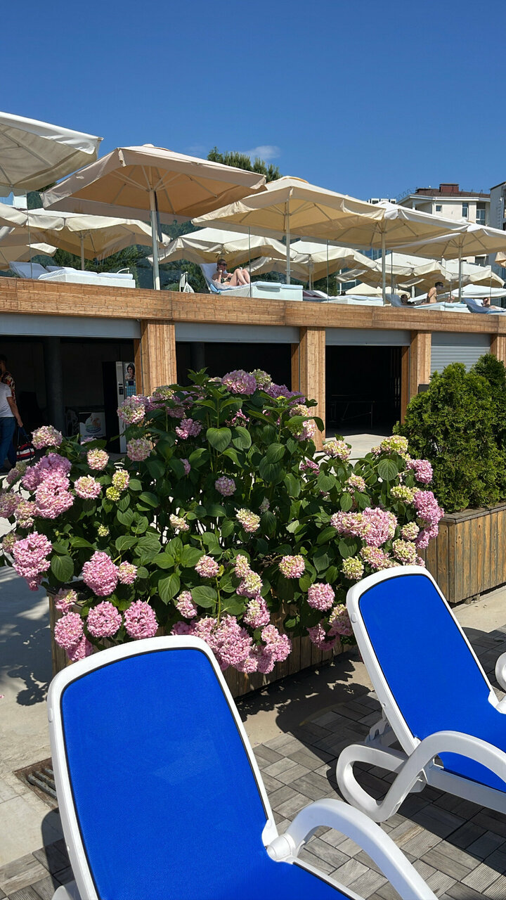 Лучший пляжный сервис . 500. Р с бассейном и душем. Неплохое кафе, недорогой прокат спортивного инвентаря. Очень много людей в выходные, отвратный заход в море(мелко и камни). Музыка у бассейна не для слабонервных, колонки-пищалки на каждом столбе, из которых что то типаВитеНадоВыйти . Идёт активное развитие территории, думаю в 2021 будет просто огонь. Хозяйствующий субъект здесь занимается своим делом))