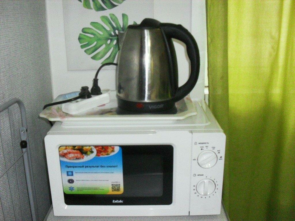 - Есть кулер, чайник, микроволновка, холодильник