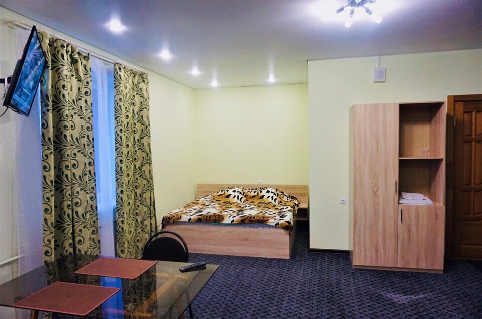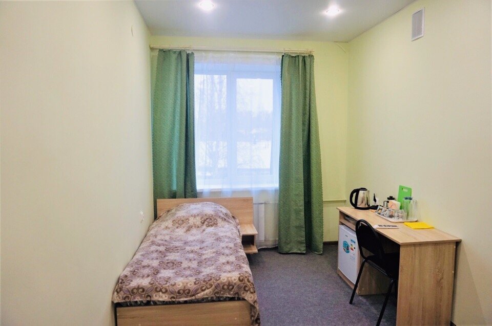 Блочная гостиница с отличным обустройством номеров на 1, 2 и 3 человека. Отдельная кухня на втором этаже. Туалет и ванна в каждом номере. Есть люкс номера со своей кухней. В 2019 году цена за обычный номер от 700 до 1200 рублей. В шаговой доступности два продовольственных сетевых магазина, ж/д вокзал и остановка веждугородних автобусов. Для приезжих в командировку отличное место. Один минус — от района, где находится гостиница у Вас начнутся депрессники, особенно осенью.