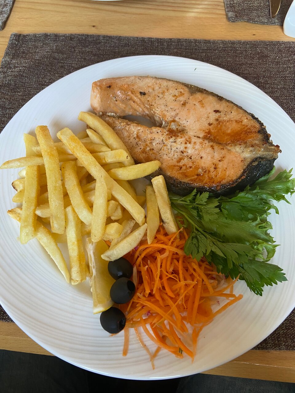 Ассортимент меню, скудноват. Официант записал заказ не правильно. В фойе неприятный запах. Не рекомендую.