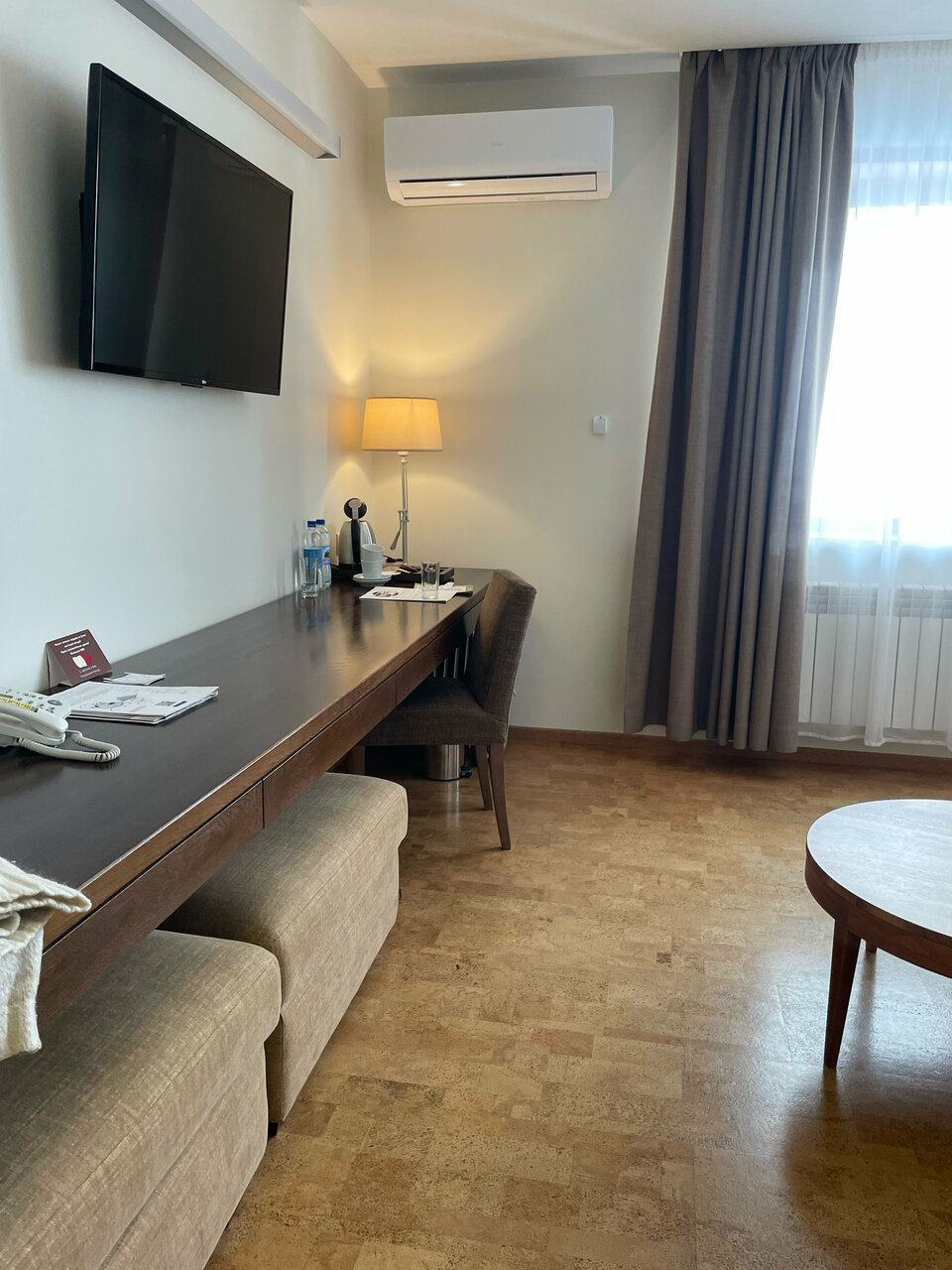 Хорошая гостиница, уютные номера, может немного устарели и требуют лёгкого ухода (петли смазать у дверей, шкафов) но в целом наполнение хорошее, все есть. Отличный завтрак!!! Рекомендую)