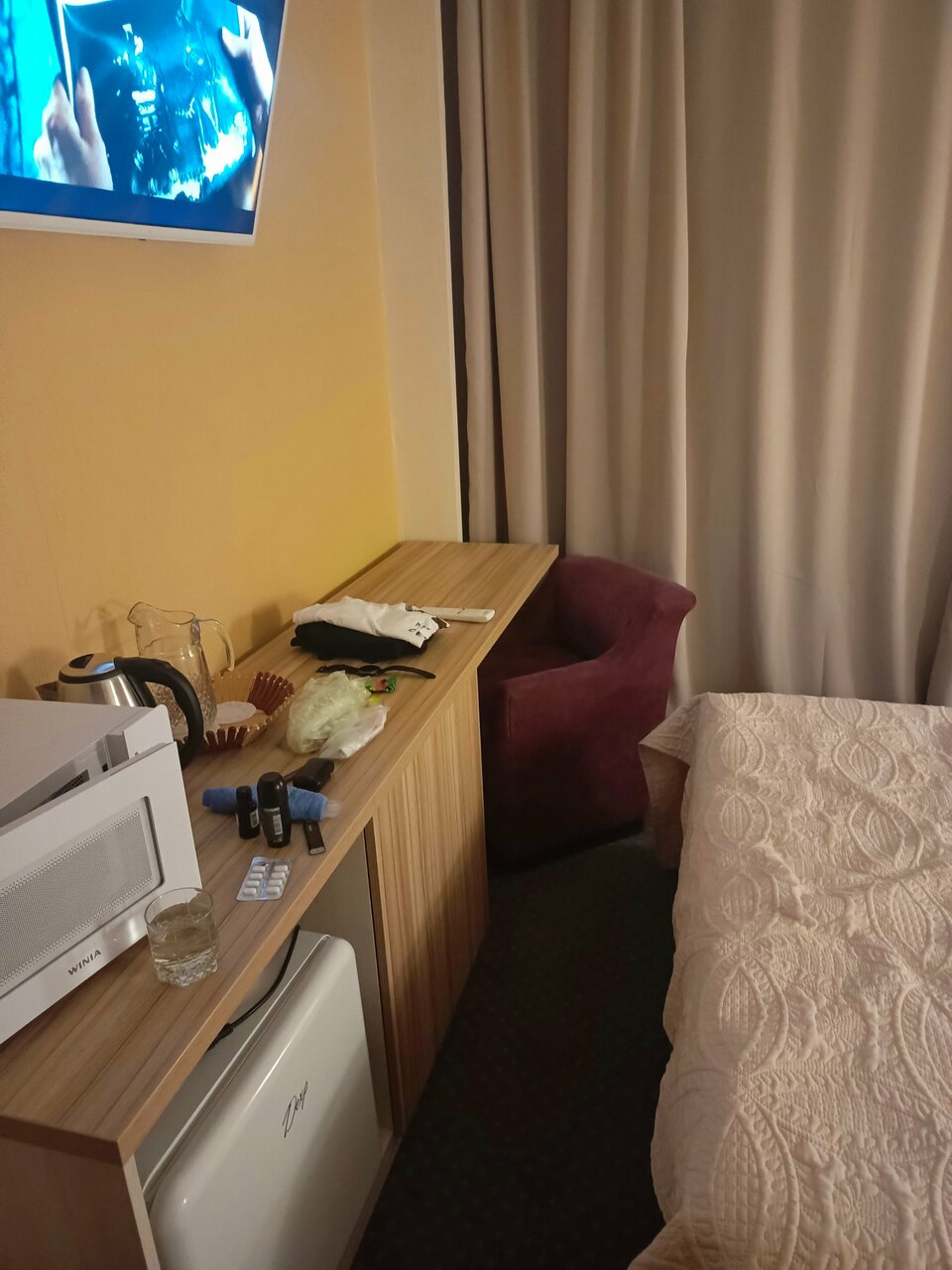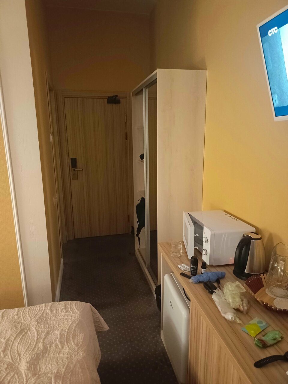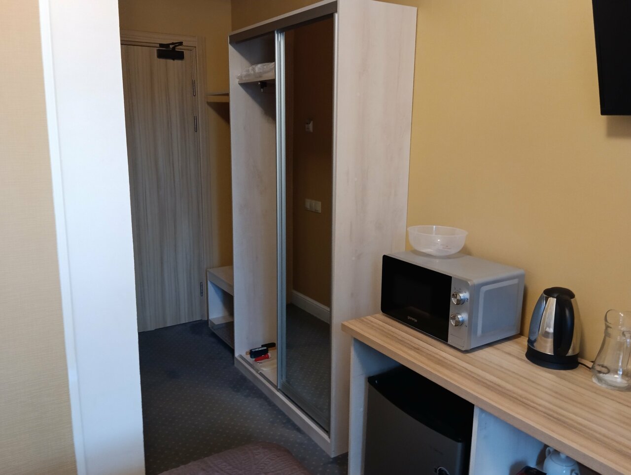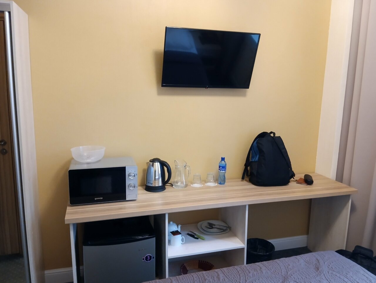 - Наличие необходимой техники (чайник, холодильник, микроволновка, телевизор).