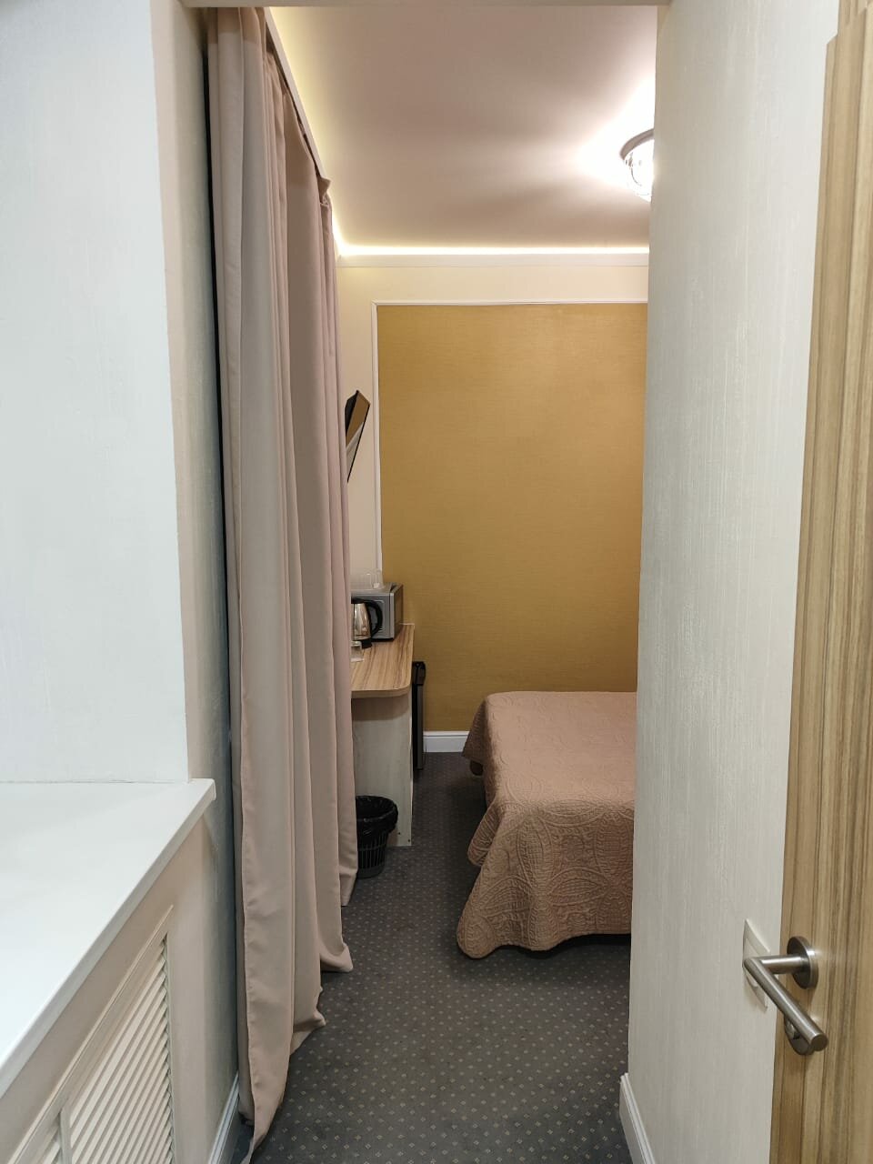Персонал замечательный,шторы темные(что весьма к стати в белые ночи. к ремонту есть немного замечаний: в ванной холодный пол резиновый коврик был бы весьма кстати, у раковины и стены щель- туды постоянно вода выливается и на полу мокро. Расположение гостиницы мне тоже понравилось, жалко что нет по еде хотя бы одной альтернативы, вся еда привозная,ее можно разогреть в микроволновке. Ещё немешало бы старые обогреватели заменить на конвектор, было бы эффективнее.