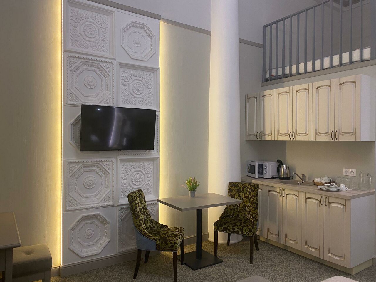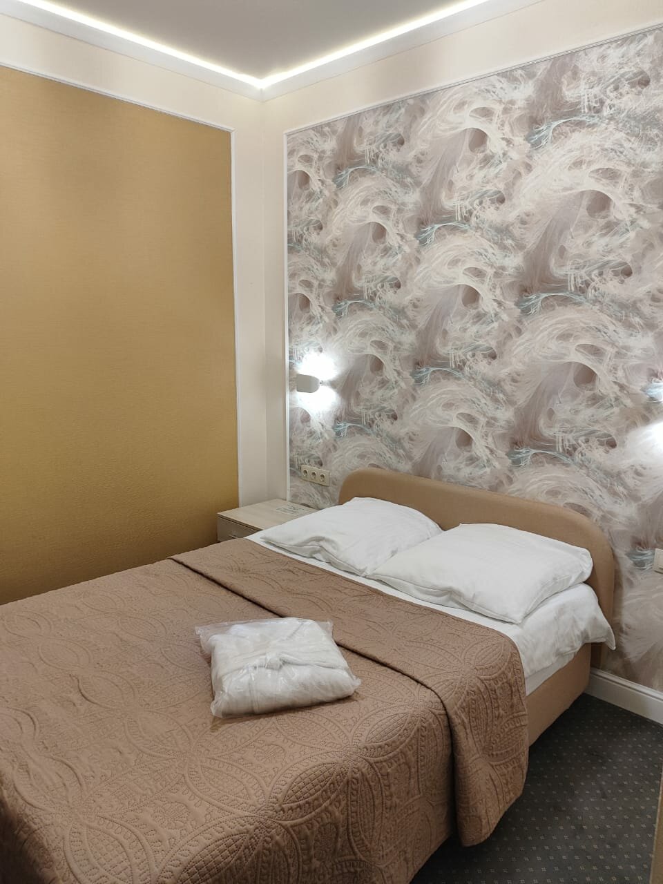 Останавливались на сутки в номере полулюкс. В номере чисто. Есть полотенца, халаты и даже тапочки. В номере имеется холодильник, чайник , микроволновка и посуда. В комнате немного не хватает мойки. Чашку сполоснуть приходится идти в душевую. В остальном, уютный отель с вежливым персоналом.