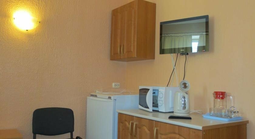 - Наличие необходимой техники (чайник, холодильник, микроволновка, телевизор).; Приветливые администраторы.; В некоторых номерах есть мини-кухня и дополнительные удобства (фонарик, тапочки).; Чистые и уютные номера.; Удобное расположение (близко к центру, магазинам, кафе).